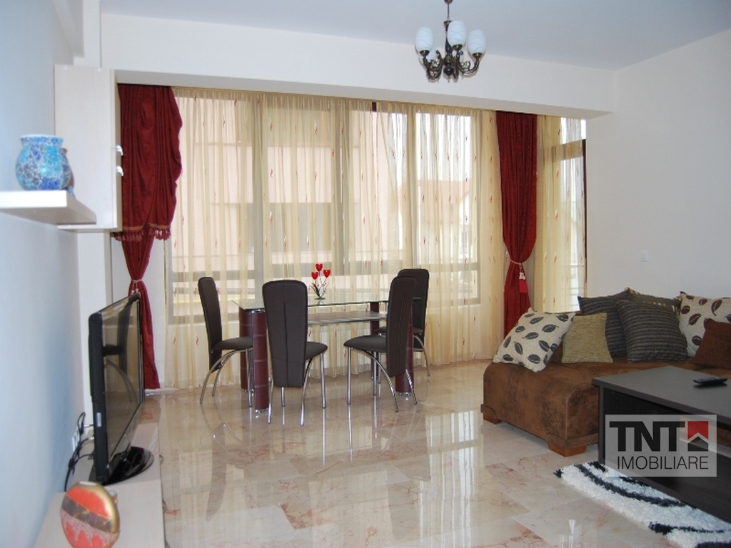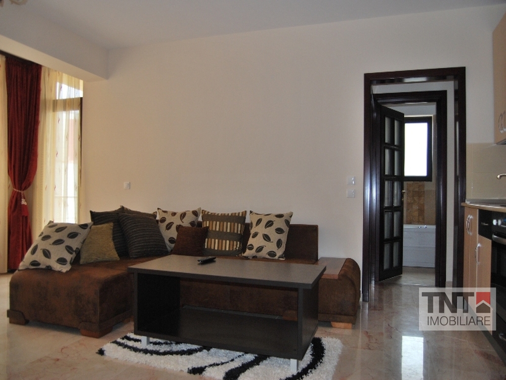 Apartamentul propus spre inchiriere este situat intr-un bloc NOU, contructie 2009 - finisaje exterioare de exceptie - marmura la fatada si pe casa scarii, iluminare cu senzori, interfon, etaj 1, format din 2 camere 50mp ( living + bucatarie, dormitor, hol, balcon). Apartamentul are imbunatatiri de cea mai buna calitate: marmura (living + bucatarie), parchet bambus, gresie si piatra naturala, bucatarie tip american, usa exterioara antiefractie, usi interior lemn masiv, tamplarie ferestre PVC cu geam termopan, complet mobilat si utilat: plita pe gaz, cuptor electric, masina de spalat, frigider, cada vibromasaj, TV LCD,etc. TOTUL ESTE IMPECABIL, Merita vazut!