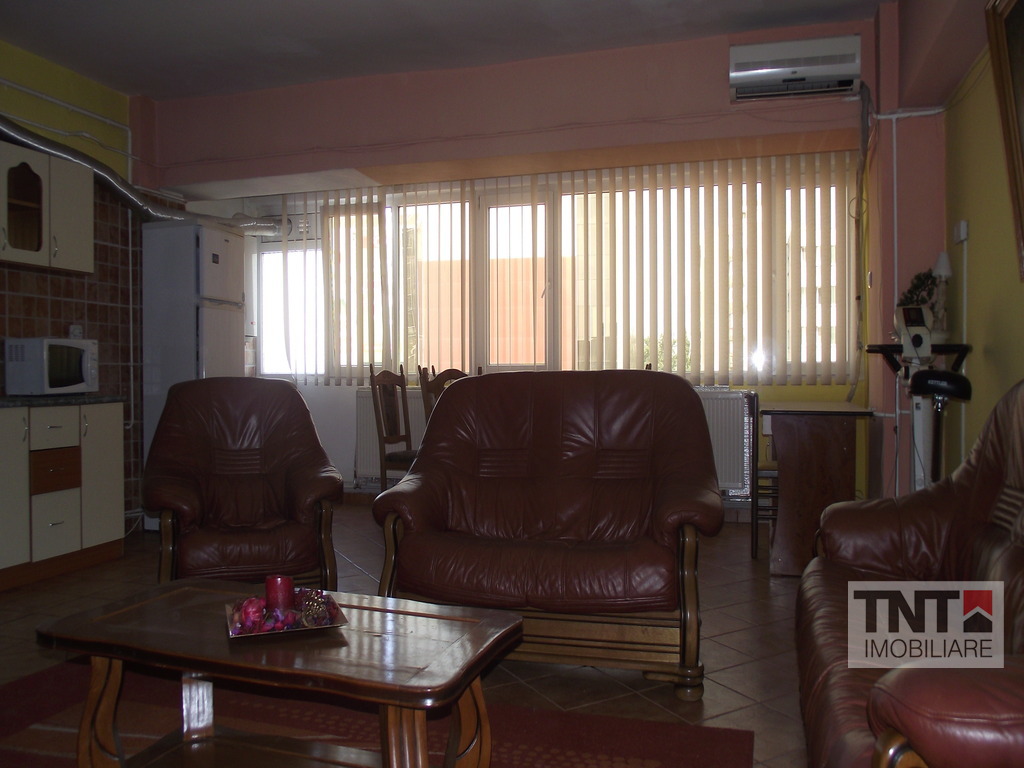 Apartamentul este situat in Iasi, zona Centru Civic. Este compus din 3 camere decomandat plus dependinte, cu o suprafata de 80 mp si este situat la etajul 4 al unui imobil de 8 etaje. Ca imbunatatiri, apartamentul este modern cu gresie, faianta, parchet, tamplarie PVC cu geam termopan, masina de spalat, aragaz, centrala termica proprie, aer conditionat. Pretul de inchiriere este de 600 euro/luna. Aceasta oferta se adreseaza atat persoanelor fizice cat si celor juridice.
