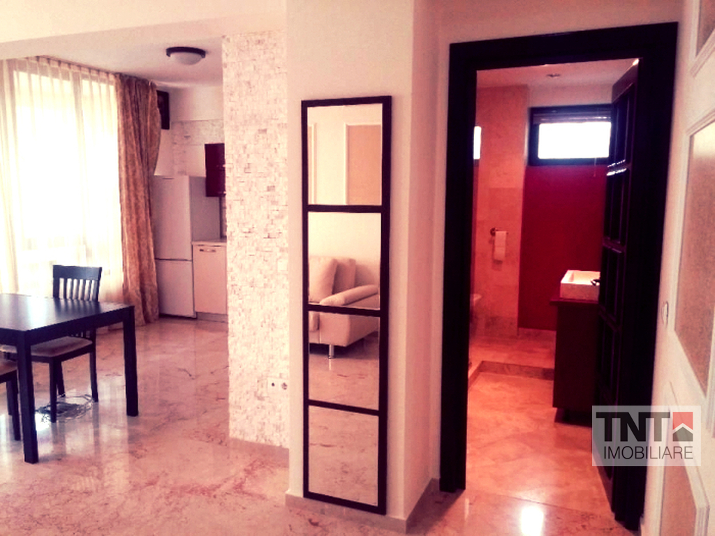 Apartamentul are ca imbunatatiri: dressing separat, are conditionat, masina de spalat, plita si cuptor electric, geamuri tripan, frigider, aragaz, parchet, gresie, faianta, o parte din mobila este noua. Beneficiaza de paza in complex, video-interfon si este la prima inchiriere. Imobilul se afla in stare buna si se inchiriaza complet mobilat si utilat de lux, pretul fiind usor negociabil.