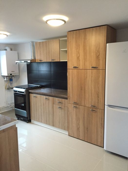 Ca imbunatatiri aveti centrala termica cu termostat si calorifere aluminium. Izolata la exterior si in pod,, tamplarie PVC cu geam termopan, izolat exterior, mobilat si utilat complet, pat matrimonial in cele 2 dormitoare, LCD, baie mare cu cabina dus, bucatarie spatioasa si utilata complet. 400 Euro negociabil + o luna garantie!