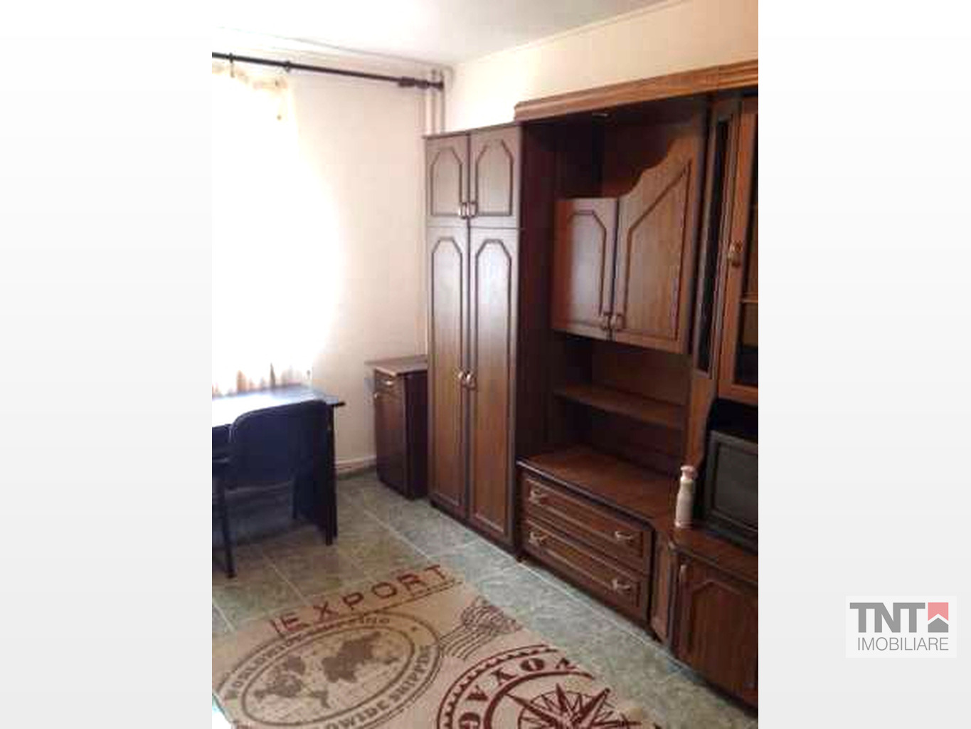 Apartament 1 camera, decomandat, cu o suprafata de 32 mp, situat la parterul unui bloc din zona Garii, la strada principala, foarte aproape de centrul orasului, curat, gresie, faianta, tamplarie din PVC cu geam termopan, centrala termica, mobilat si utilat, 200 euro
