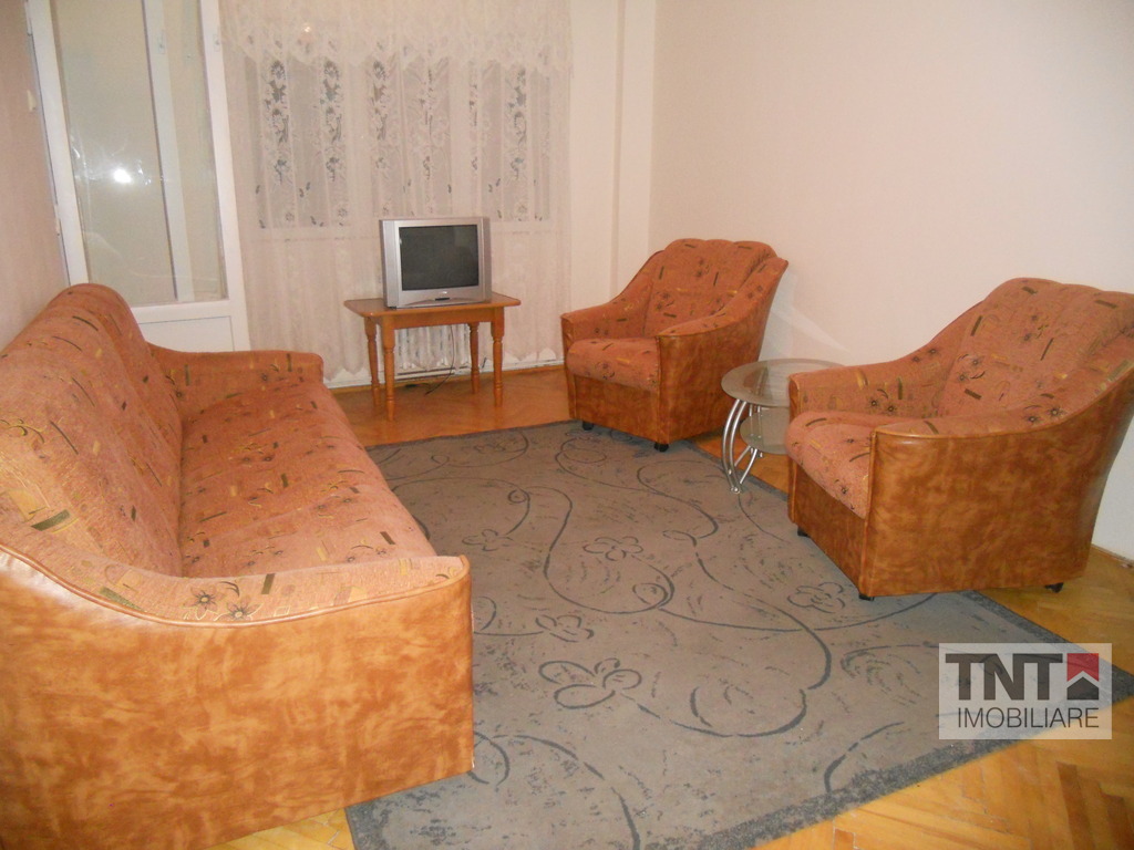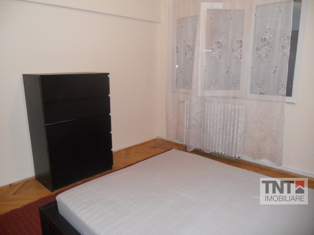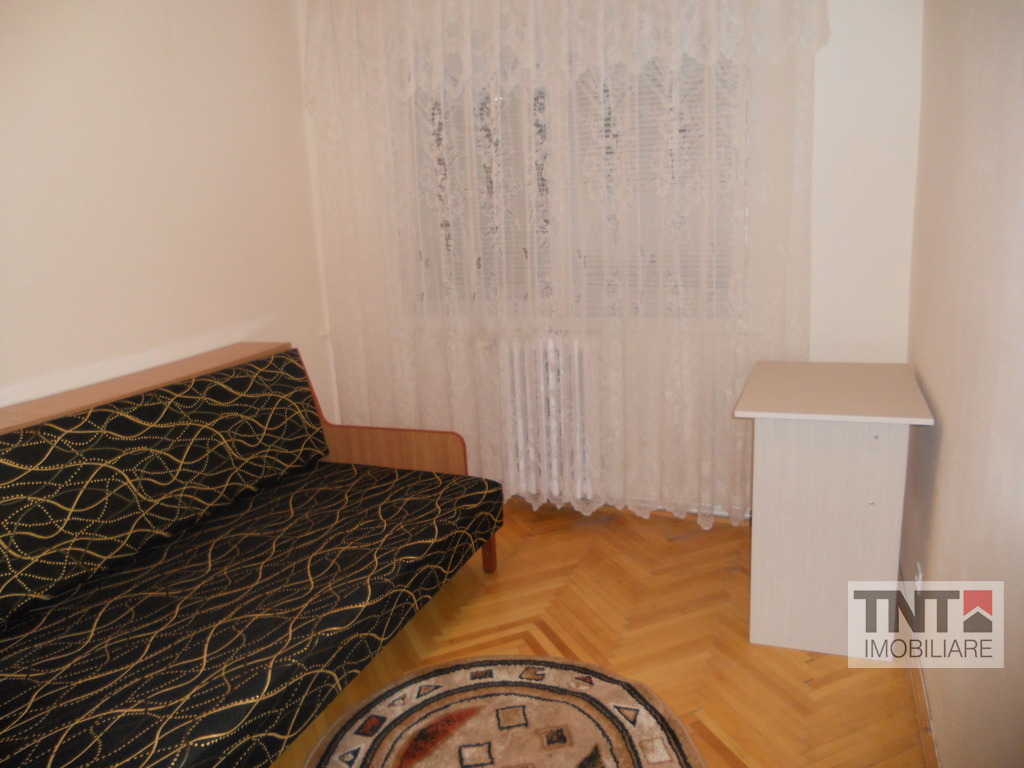 nchirieri apartamente in zona Podul Ros. Apartamentul este compus din 3 camere semidecomandate. Ca imbunatatiri aveti tamplarie PVC, centrala proprie, gresie, faianta, parchet, var lavabil, renovat, curat, tamplatie interior schimbata, complet mobilat si utilat, calduros, interfon, liber, zona linistita, foarte aproape de mijloacele de transport in comun. Pret 350 Euro pe luna.