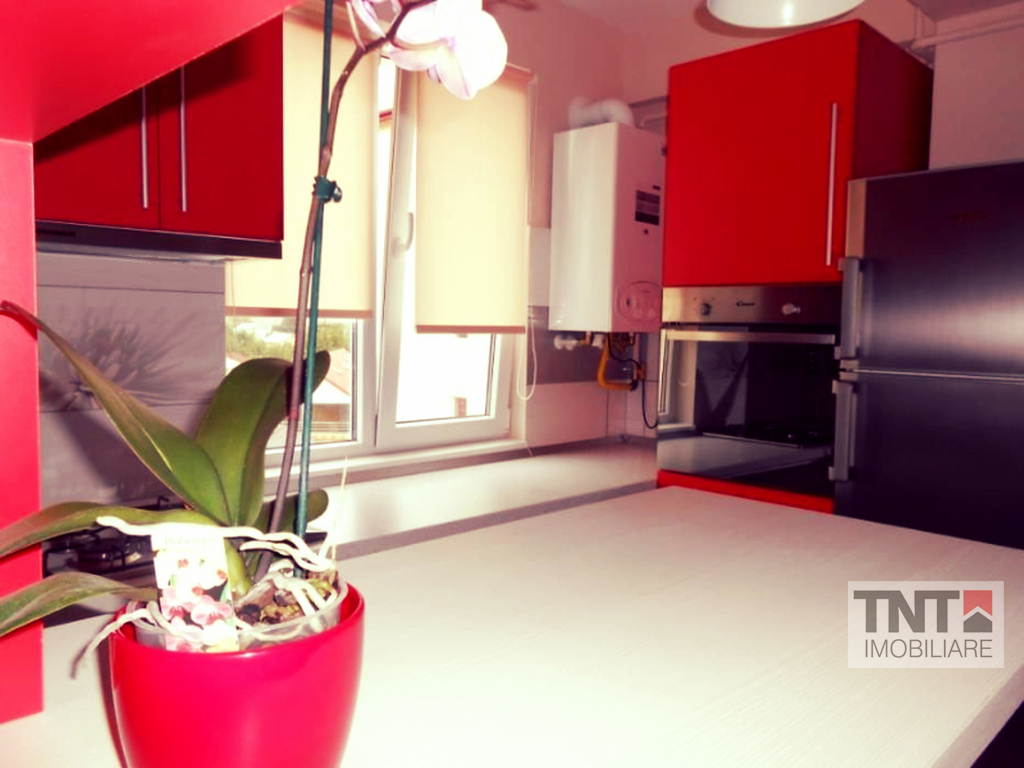 Apartamentul are ca imbunatatiri: centrala termica, plita si cuptor electric, hota, tv LCD, frigider, masina de spalat, cablu, internet , interfon, parchet, gresie, faianta, termopan. Imobilul se afla in stare foarte buna si se inchiriaza complet mobilat si utilat de lux, pretul chiriei fiind de 350 euro si al garantiei de 450 de euro.