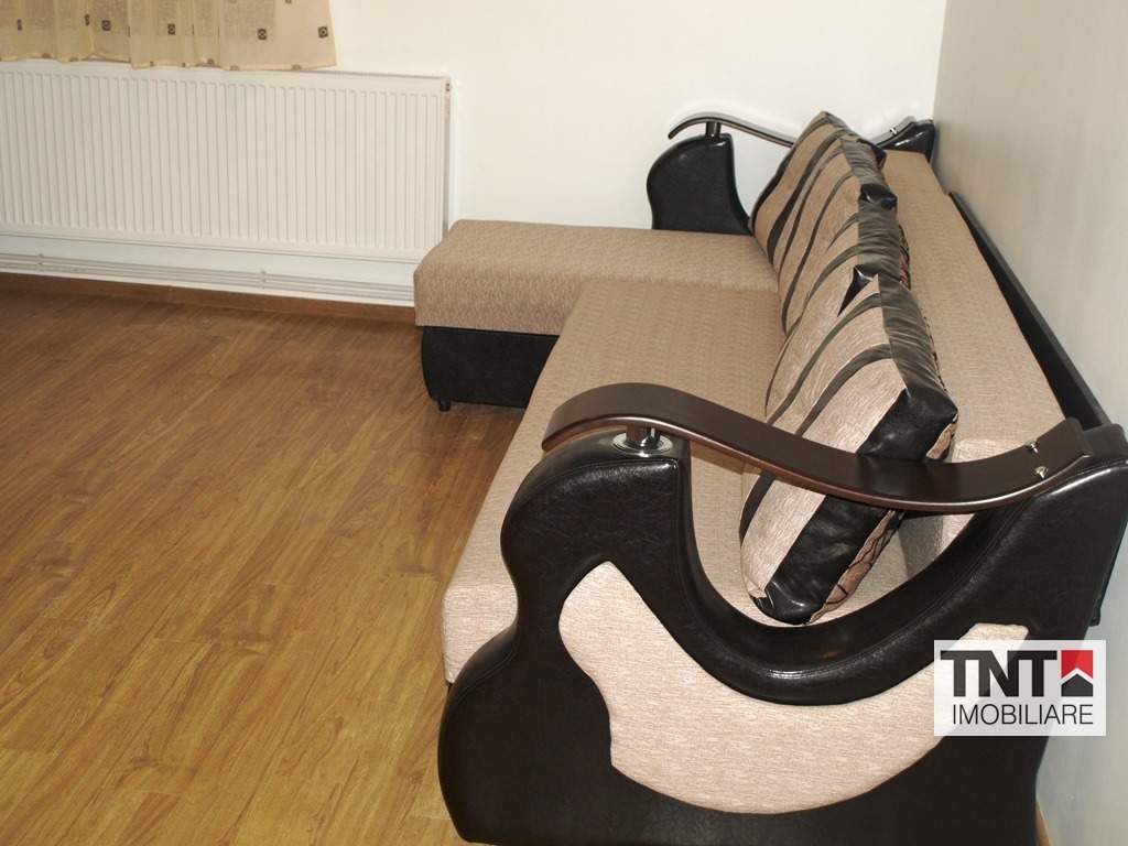Agentia TNT Imobiliare ofera spre inchiriat apartament cu o camera in zona Tudor. Pozitionarea imobilului ofera acces facil la toate nevoile dumneavoastra: mijloace de transport in comun, parcuri, farmacii, supermarketuri. Avantajele imobilului sunt: centrala termica proprie, tamplarie pvc cu geam termopan, parchet din lemn masiv 12 mm, imbunatatiri (gresie, faianta, parchet, usa metalica).