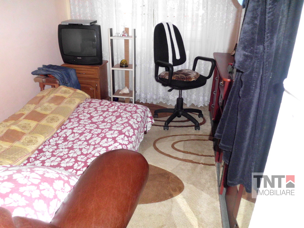 Imobilul propus spre vanzare se afla in zona Alexandru cel Bun , compus din 3 camere semidecomandate, cu o suprafata de 54 mp, bloc fara risc seismic, an constructie 1978, pe placi. Ca imbunatatiri aveti gresie, faianta,parchet , gaz separat, centrala termica, termopan, balcon inchis cu termopan , usa metalica, baie mare cu cada, geam la baie, usa metalica, usi interioare schimbate, var lavabil, liber, se poate vinde si semimobilat.