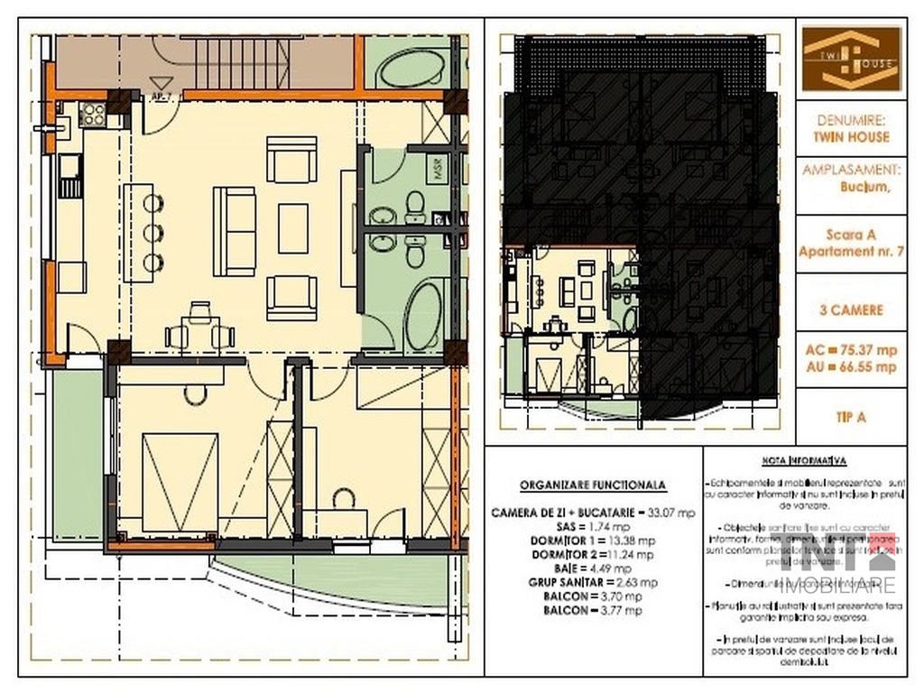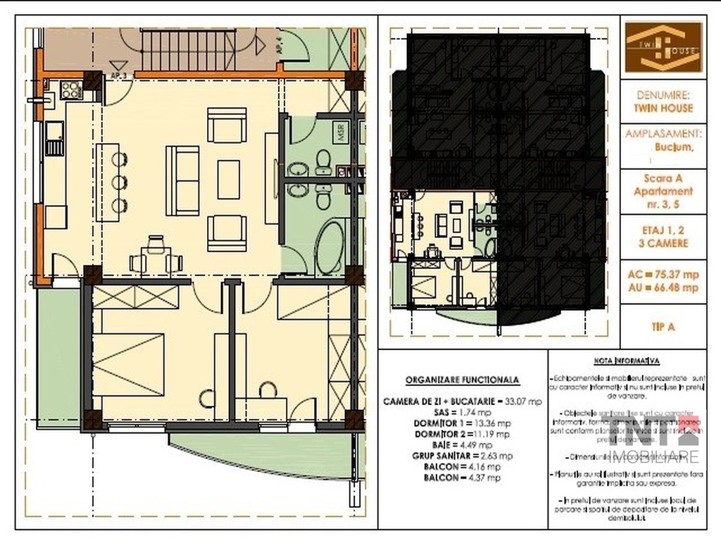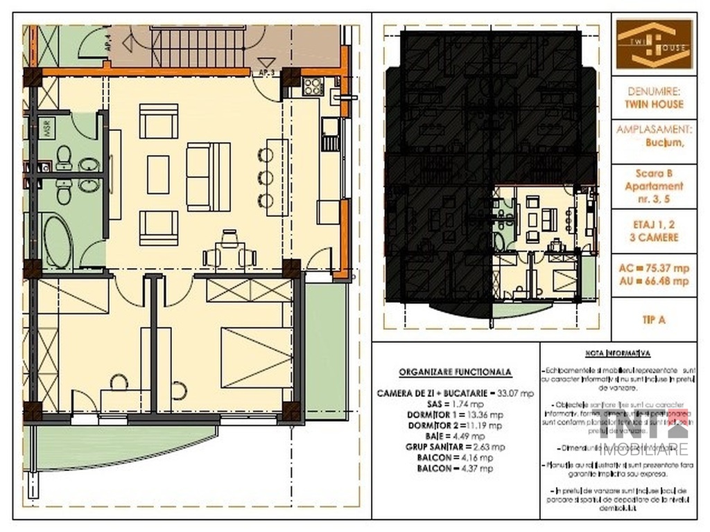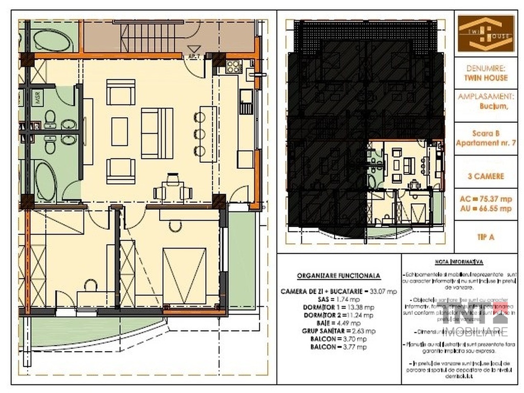 Apartament nou 3 camere cu o suprafata utila totala de 75mp si predare finisat la cheie in toamna anului 2014.