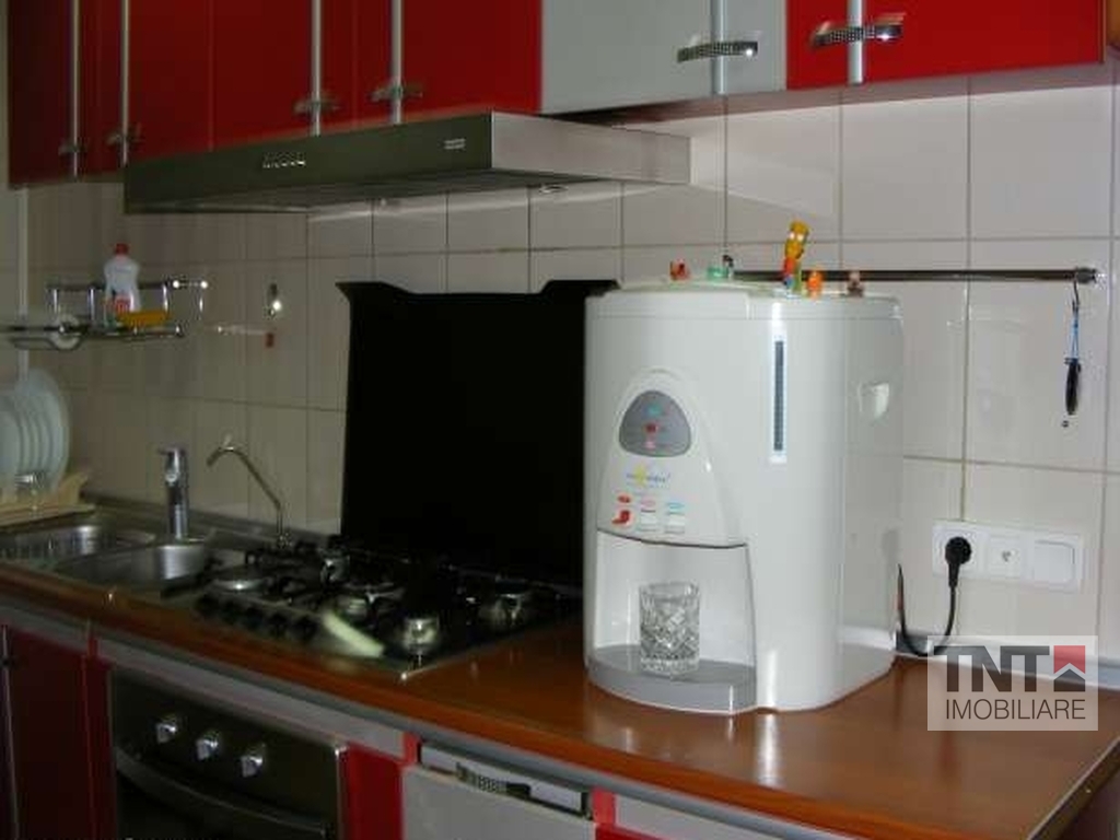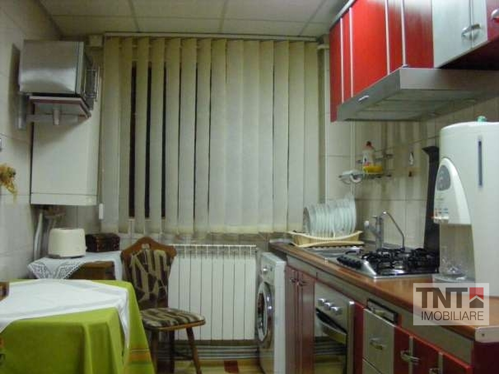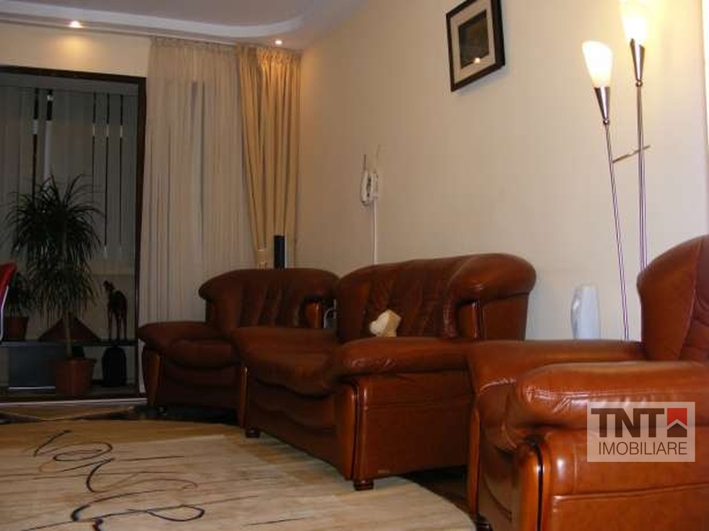 Apartamentul este situat la bulevard, este complet decomandat, mobilat si utilat, si are urmatoarele caracteristici: - suprafata utila - 60 mp - 3 camere, transformat in 2 (se poate transforma foarte usor inapoi in 3, prin mutarea bucatariei la locul initial, adica pe holul de la intrare) gresie, faianta, parchet, finisaje deosebite, calorifere aluminiu, aer conditionat in living si dormitor, usi interioare din aluminiu, geamuri termopan din lemn triplustratificat balcon inchis termopan, usa intrare metalica, cu dubla inchidere, cablaj pentru telefonie, internet, televiziune, intregul apartament este izolat termic (polistiren expandat 10 cm grosime). Se vinde cu mobilieru si aparatura electrocasnica inclusa Mobilier: Set canapele piele (2 buc.), Set fotolii piele (2 buc.), Mobilier dormitor lemn masiv, Mobilier bucatarie FRANKE - Germania, Mobilier hol intermediar MDF, Mobilier living, Echipamente electrocasnice: Centrala termica - Viessman, Cuptor, Hota, Chiuveta bucatarie -Franke, Combina frigorifica Indesit - Sistem Aer Conditionat Samsung - living - Sistem Aer Conditionat Nippon - dormitor.
