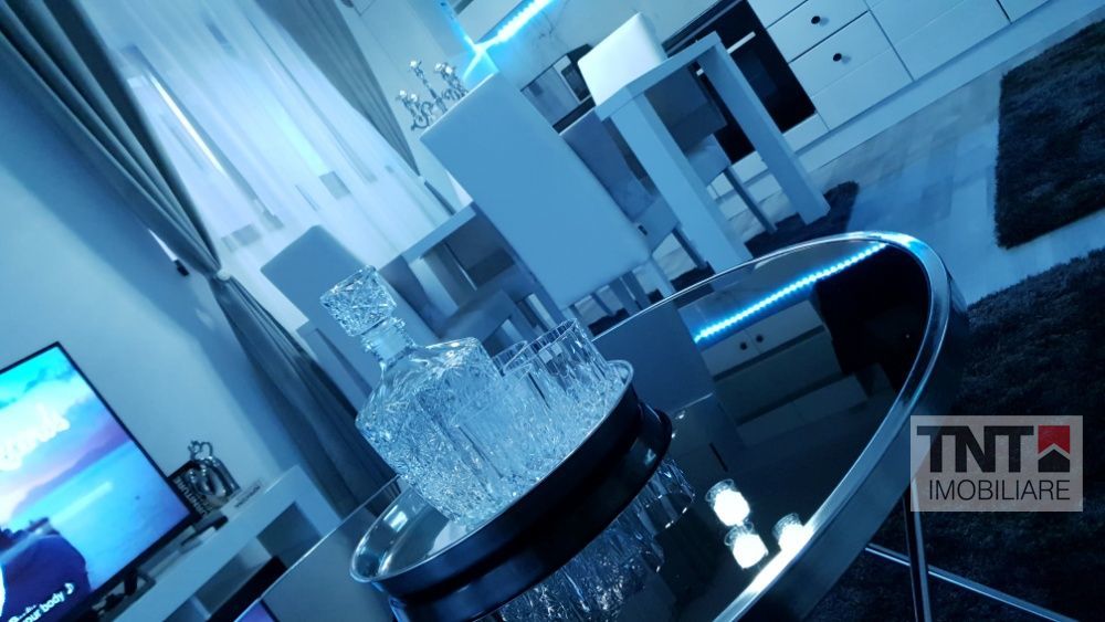 Dotari: videointerfon, usi cu toc reglabil, sistem de iluminat inteligent, termostat ambiental inteligent, sistem antiefractie inteligent, aer conditionat inteligent Google Home Assistant, comenzi vocale pentru dispozitivele inteligente, tableta Lenovo pentru controlul tuturor dispozitivelor, masina de spalat cu uscator LG, plita cu inductie Zanussi, cuptor microunde digital Samsung, cuptor Gorenje simplicity, combina frigorigica FULL NO FROST Samsung, TV 50" smart 4K SONY si TV 32" smart LG, baterie de dus cu termostat WC suspendat cu sistem incastrat GEBERIT, baterie lavoar baie cu senzor, oglinda baie cu LED night mode, baterie profesionala de bucatarie cu dus, chiuveta din granit Intrerupatoare digitale, senzori usi, geamuri, si de miscare, canapea din piele, extensibila, model Chesterfield, pat matrimonial 160x200 tapitat cu piele, dulap haine tapitat cu piele, mobilier lucios si iluminare cu LED, decoratiuni diverse.