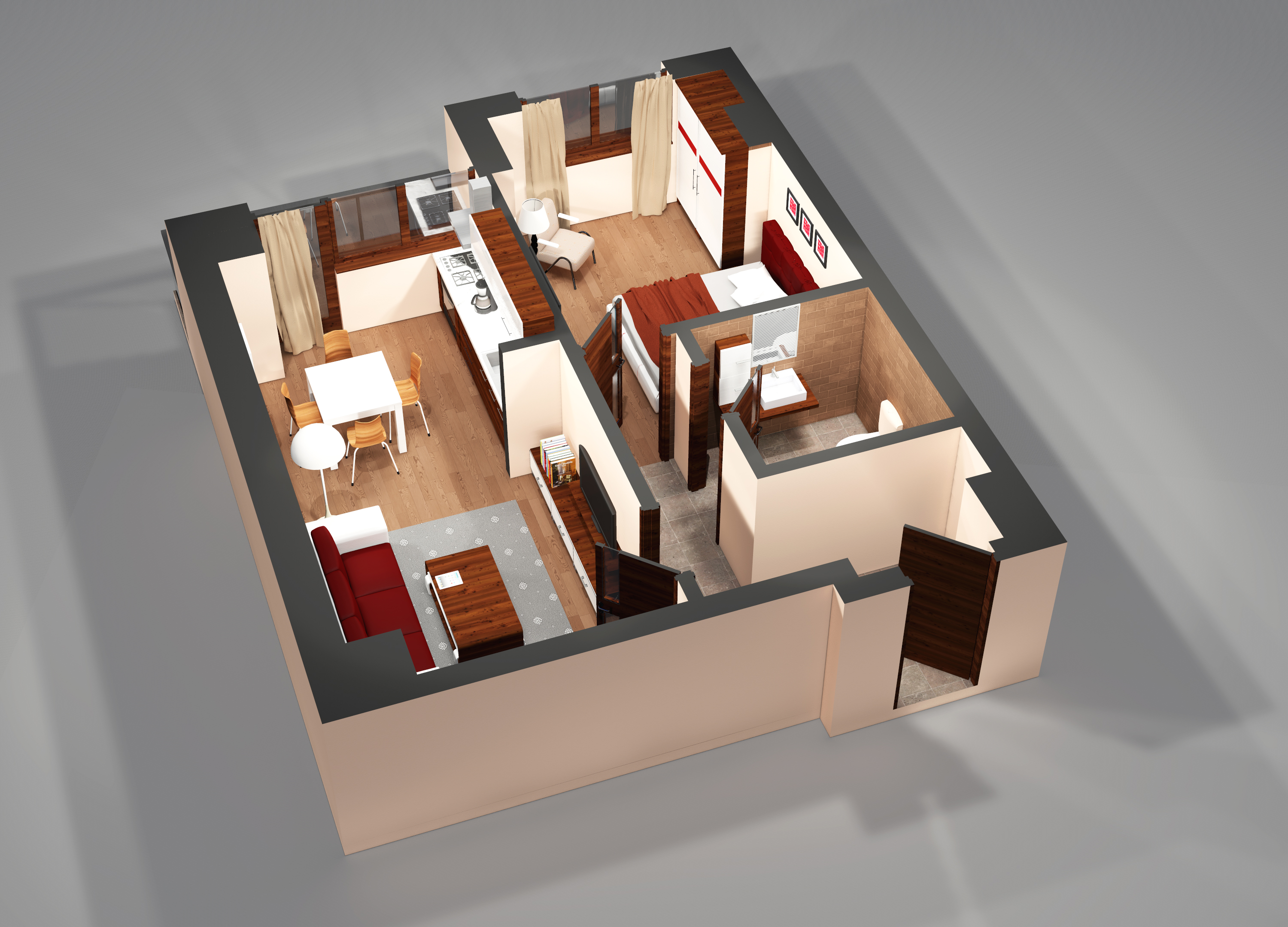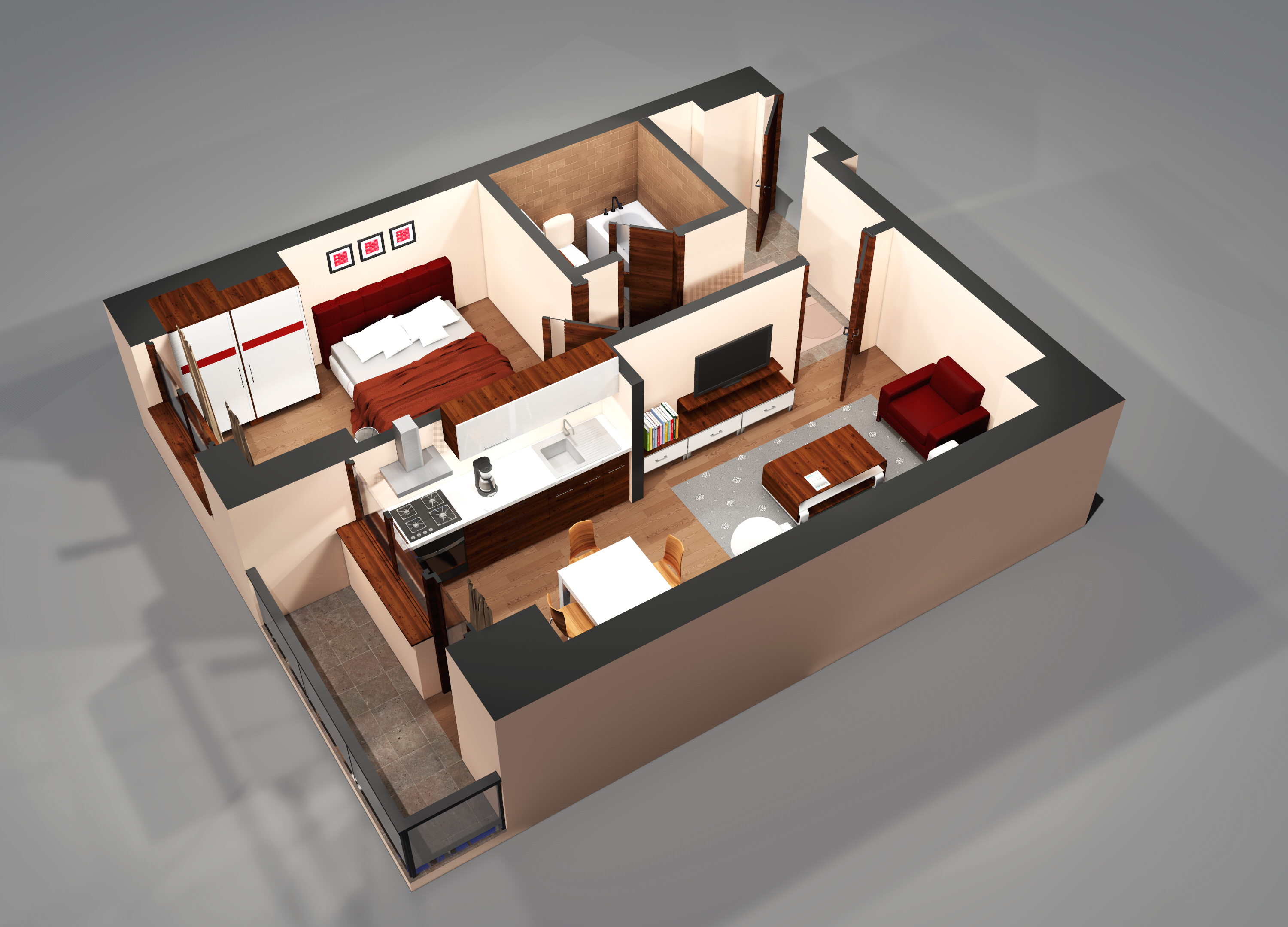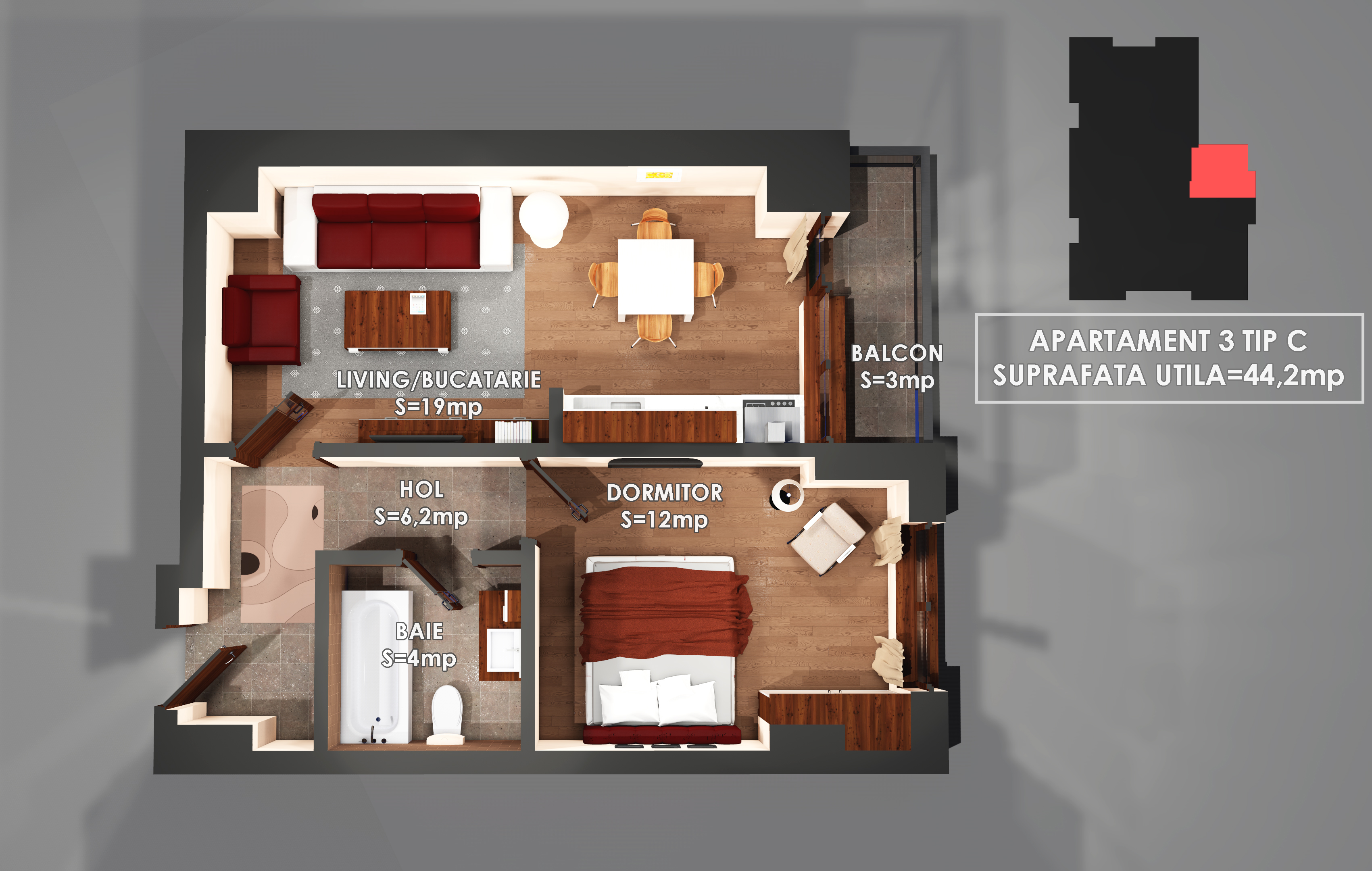 Apartament tip C, model open space, suprafata totala 44 mp, disponibil la parter si et.6 din 6.