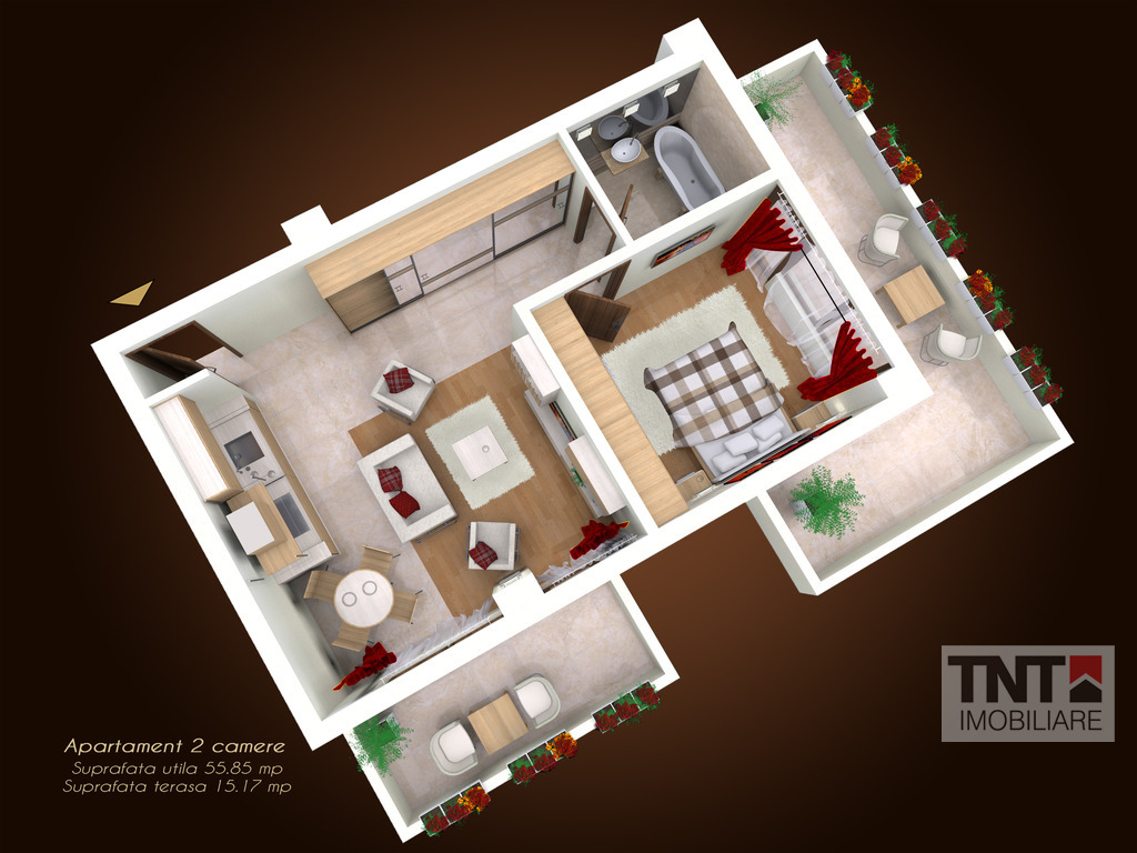 Apartament nou 2 camere cu o suprafata totala de 56 mp si predare la cheie spre finele anului 2014.