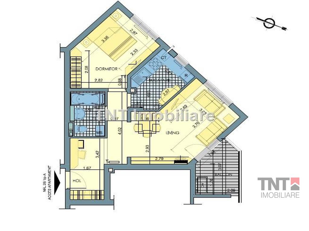 Apartament nou 2 camere cu o suprafata totala de 57mp si predare la cheie pe data de 01.06.2014