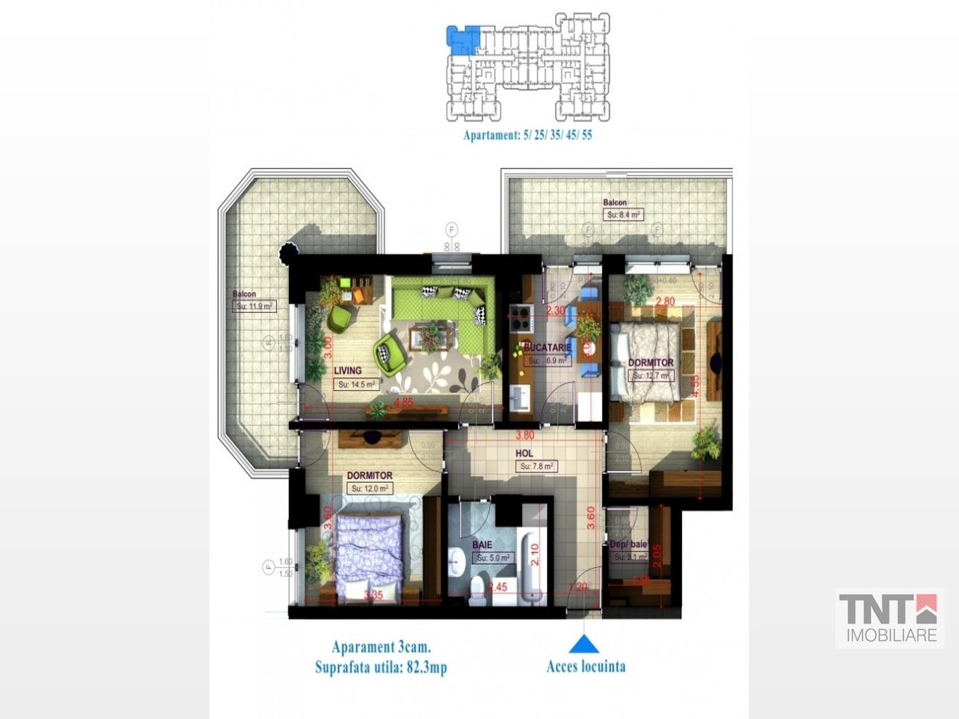 Pentru modelul cu suprafata 82.3 mp pretul este 78000 euro.