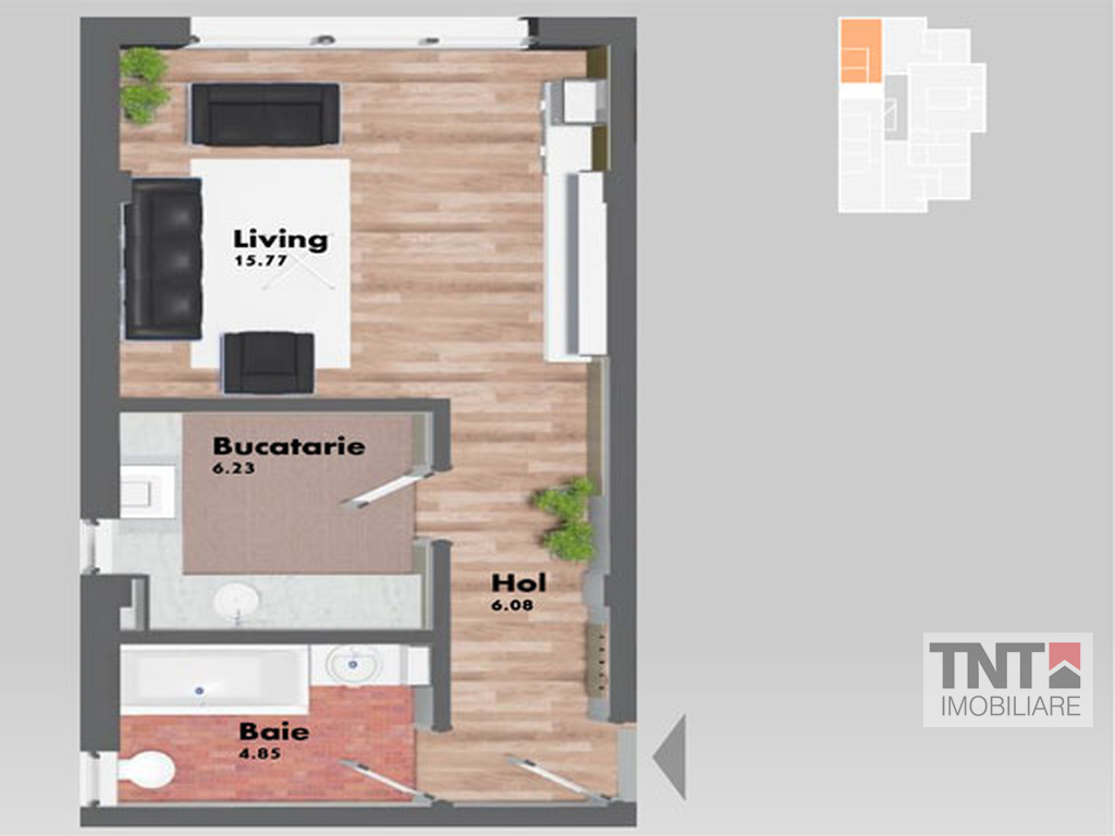 - parchet laminat sau gresie la alegerea clientului;
