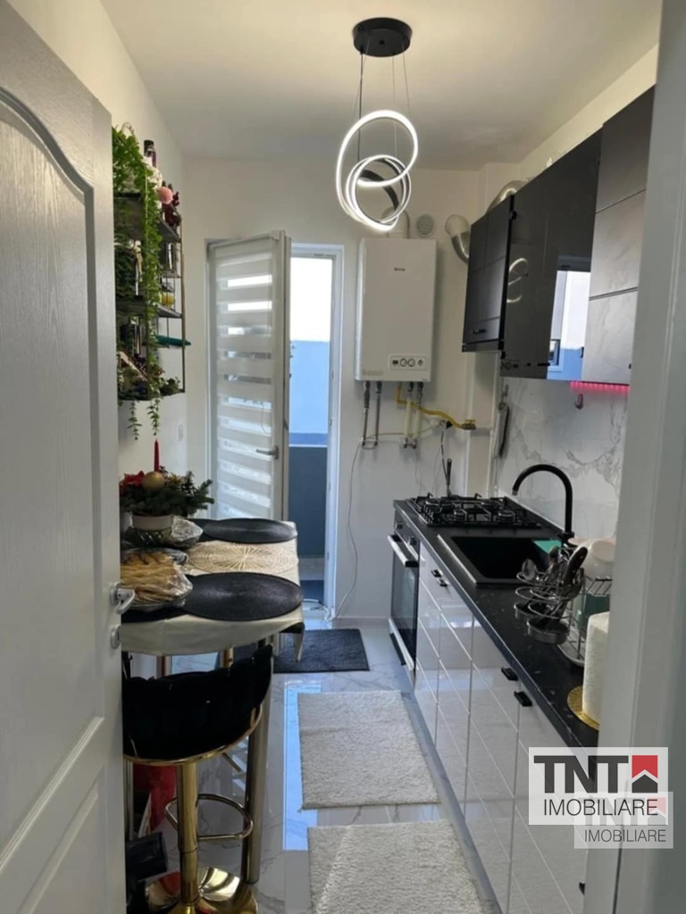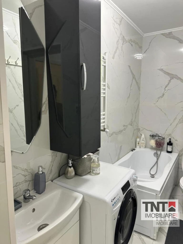 Apartamnetul este mobilat și utilat complet cu combina frigorifica Beko, plita din sticla pe gaz Beko, cuptor electric Beko, hota Franke, cuptor microunde Samsung, masina de spalat cu uscător incorporat Candy.