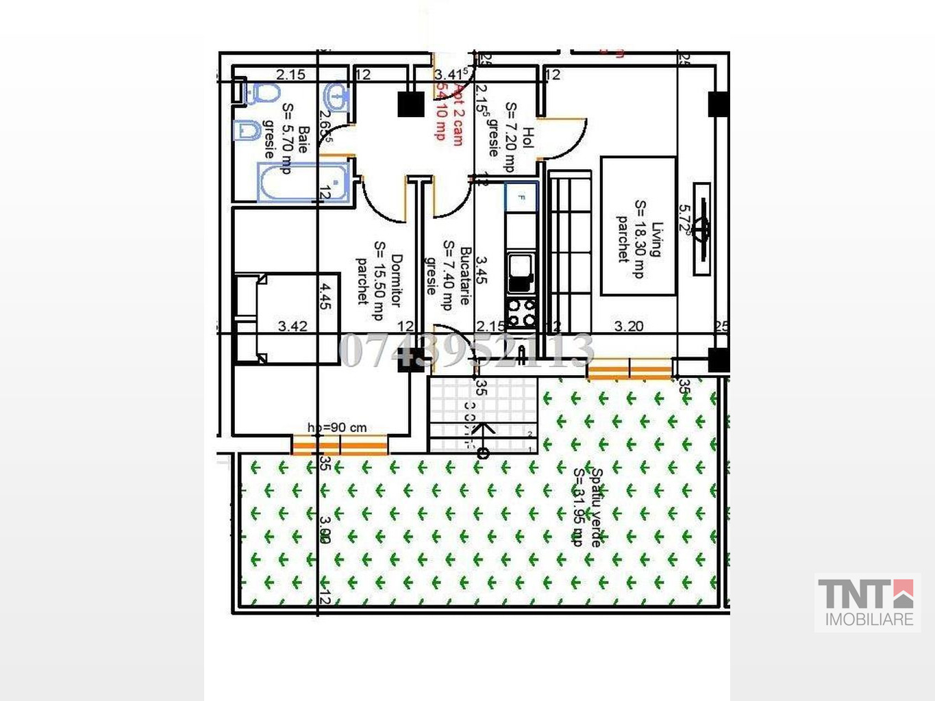 Apartamentul dispune de gradina (in suprafata de 32 mp) si include un loc de parcare subterana (in suprafata de 12.5 mp) la pretul de 43500 euro.