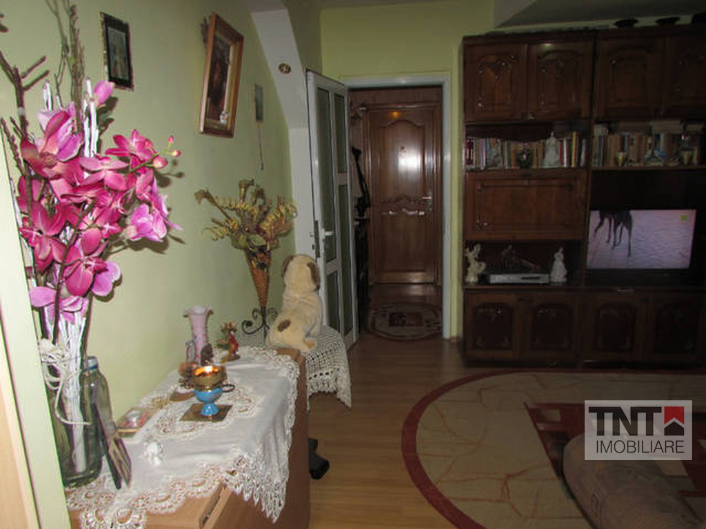 Imobilul propus spre vanzare se afla in zona Dacia,compus din 2 camere semidecomandate,cu o suprafata de 42 mp, situat la etajul 4 cu pod.Apartamentul dispune de urmatoarele imbunatatiri:gresie,faianta,parchet,balcon inchis,tamplarie PVC cu geam termopan,termoizolatie,usa metalica.