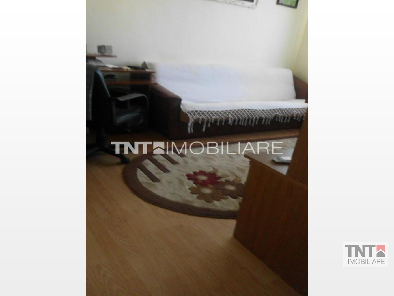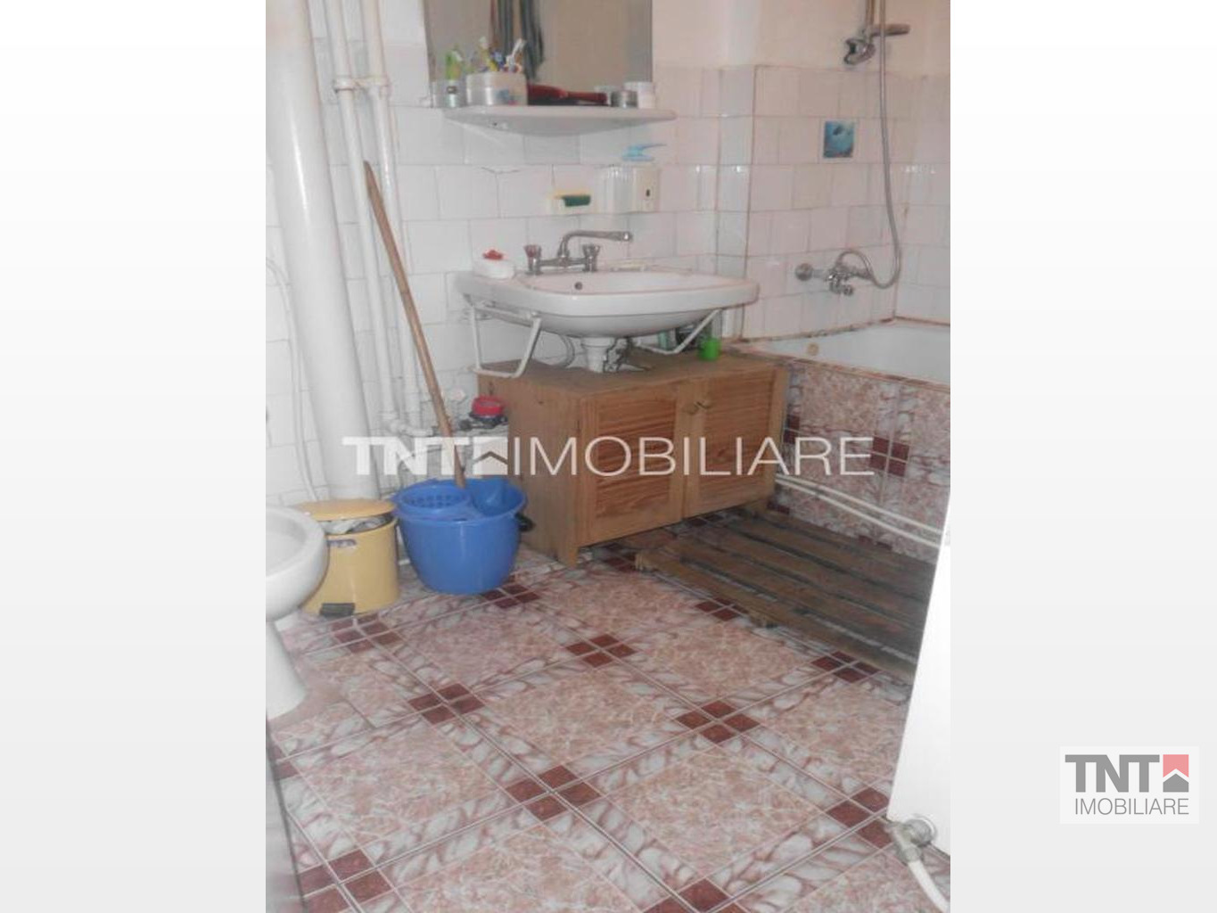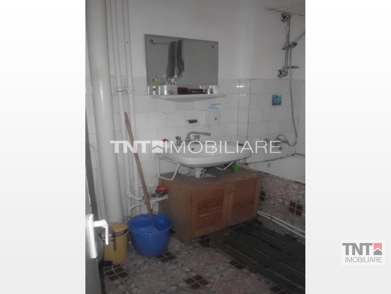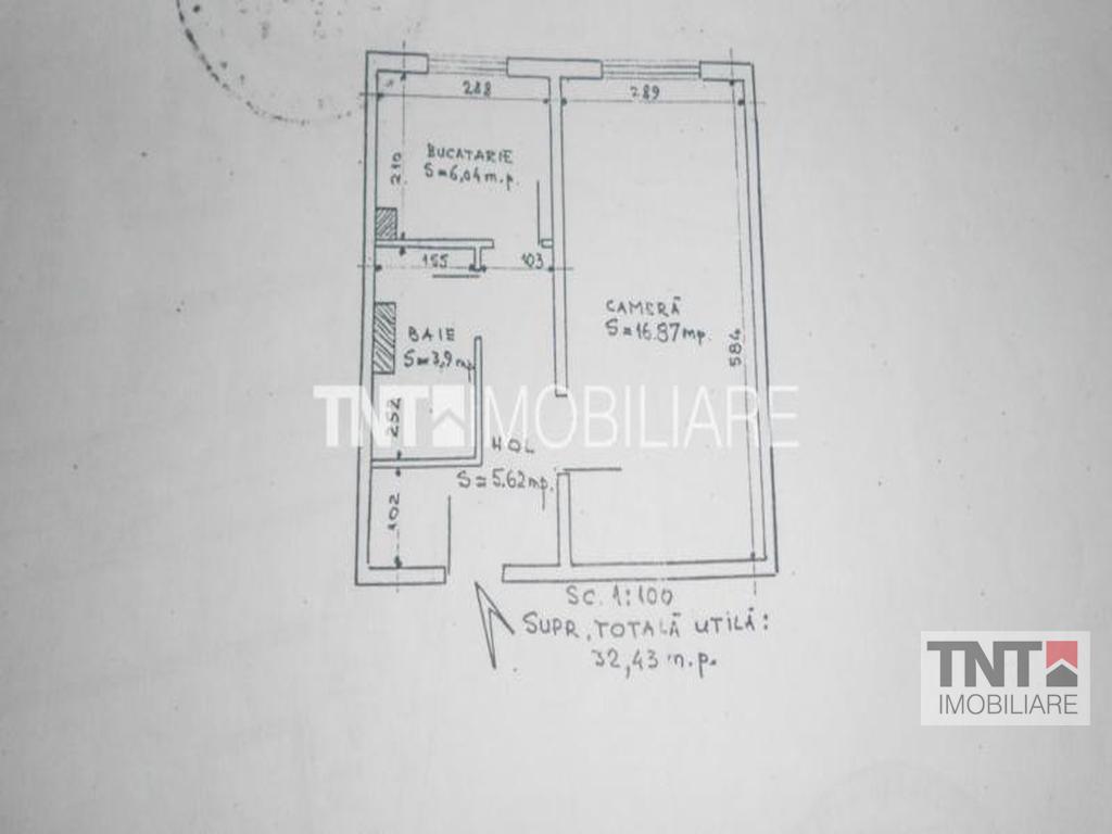Apartamentul a fost modificat putin, tranformandu-se intr-un apartament cu 2 camere( s-a despartit camera cu un perete subtire de rigips).Baia este mare, cu cada mare, chiuveta, wc.