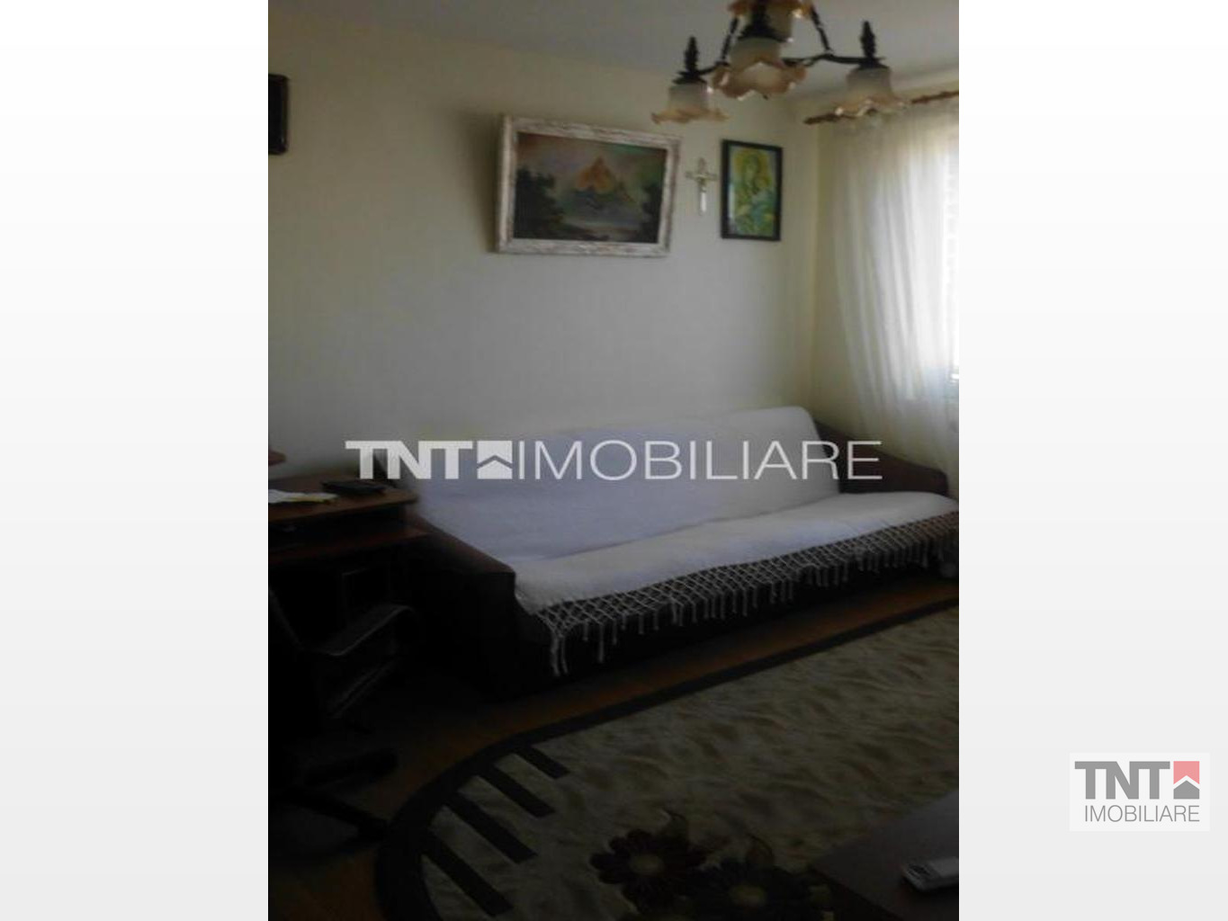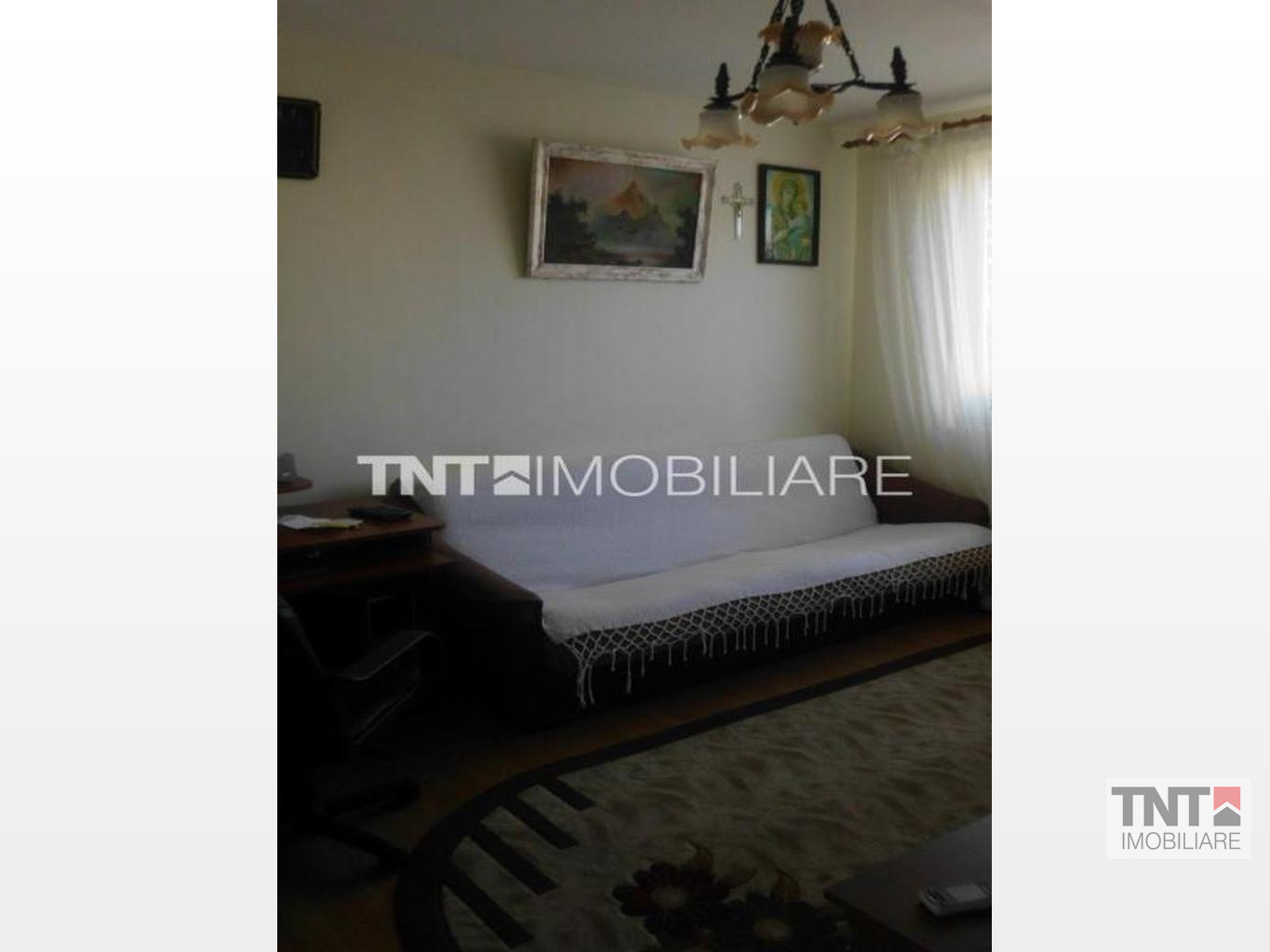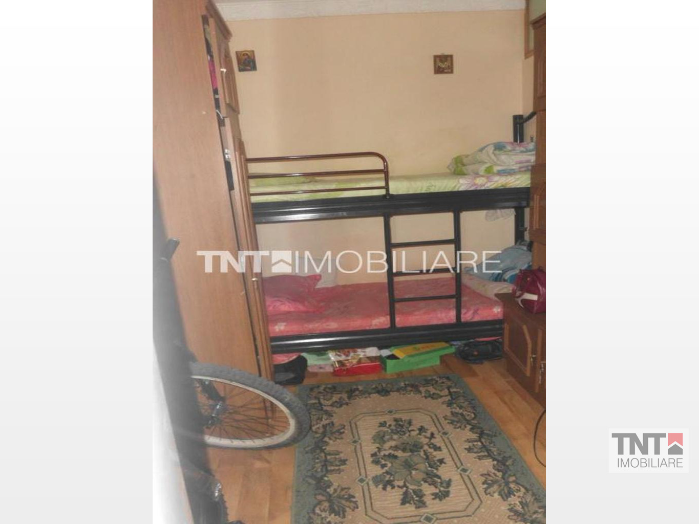 Apartamentul a fost modificat putin, tranformandu-se intr-un apartament cu 2 camere( s-a despartit camera cu un perete subtire de rigips).Baia este mare, cu cada mare, chiuveta, wc.