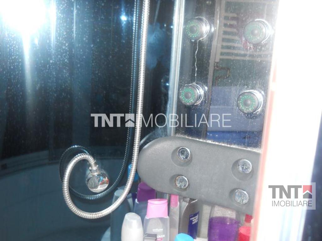 Baia are geam si este dotata cu cabina dus hidromasaj.