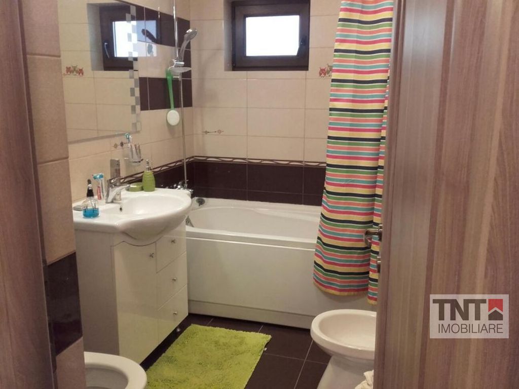 Agentia TNT Imobiliare va ofera spre vanzare un apartament cu 2 camere 60 mp+10 mp balcon, etaj 1 din 2etaje + mansarda complet utilat si mobilat de lux. Constructie 2014, finisaje de calitate, mobila la comanda cu garantie, electrocasnice noi in garantie(gorenje, samsung, indesit) aer conditionat Romstal inverter montat in 2016, centrala termica cu repartitoare (robinet pentru fiecare consumator si calorifer in parte) 2 balcoane cu o suprafata totala de 10mp, tamplarie pvc, rulouri exterioare cu plasa de tantari tip rulou, 2 locuri de parcare in incinta complexului, poarta cu telecomanda la intrarea in complex, zona linistita