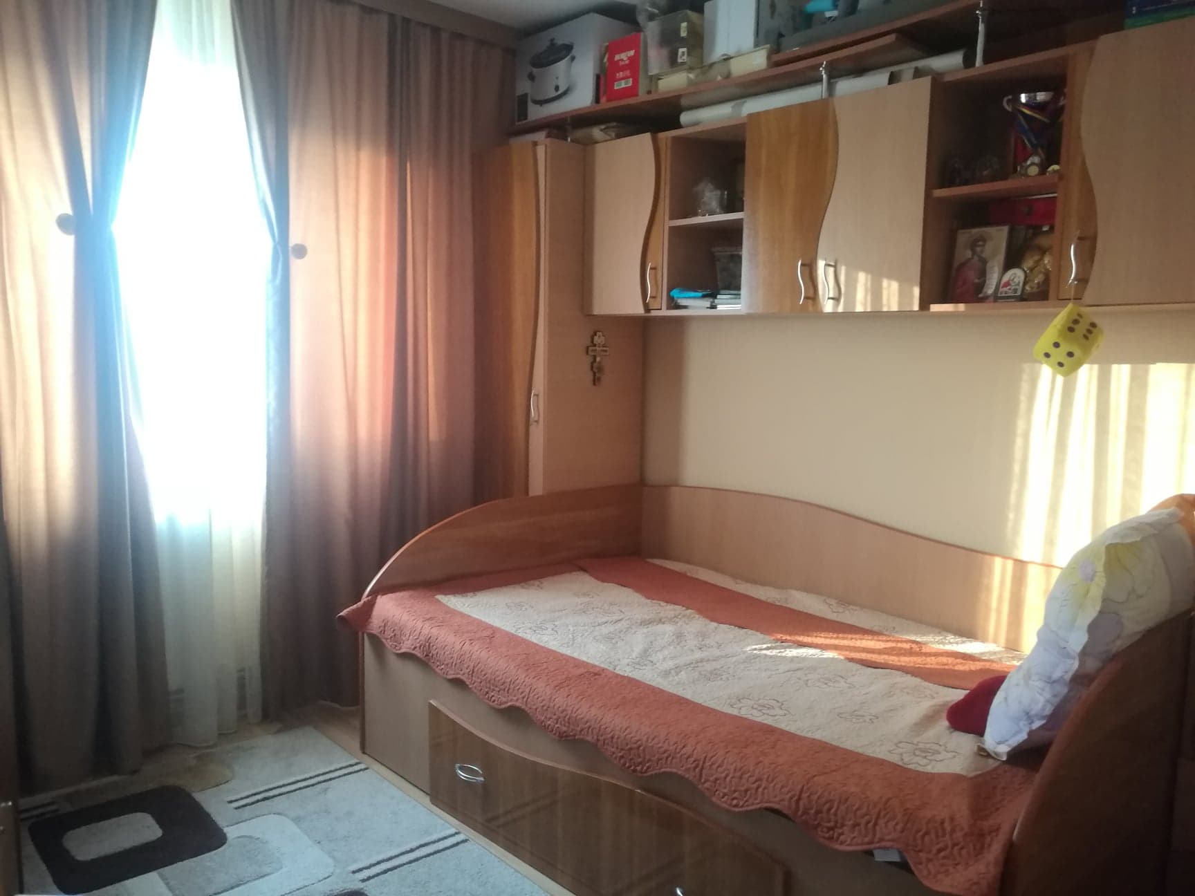 Apartamentul este situat la etajul 4 dintr-un imobil cu 4 etaje, fara probleme cu hidroizolatia. Apartamentul este alcatuit din 2 camere, baie, bucatarie, hol, balcon. Ca si imbunatatiri apartamentul beneficiaza de gresie, faianta, parchet, izolatie interioara-exterioara, termopan, centrala termica.