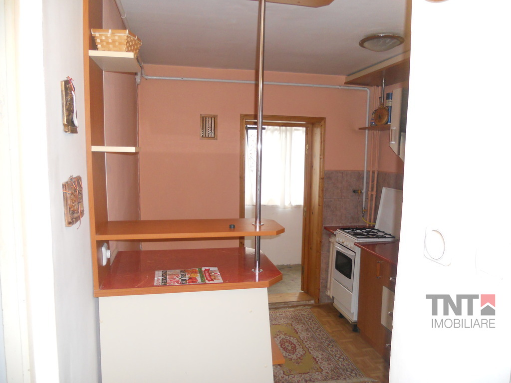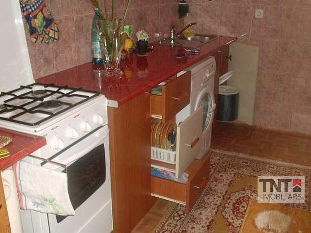 Bucataria este marita( s-a renuntat la debarale), are iesire spre balcon. Se poate vinde mobilata si utilata complet.