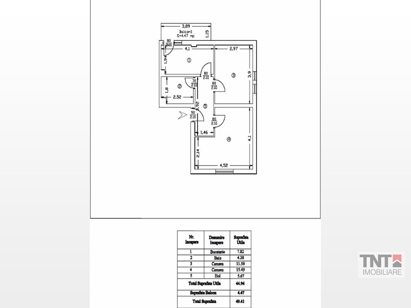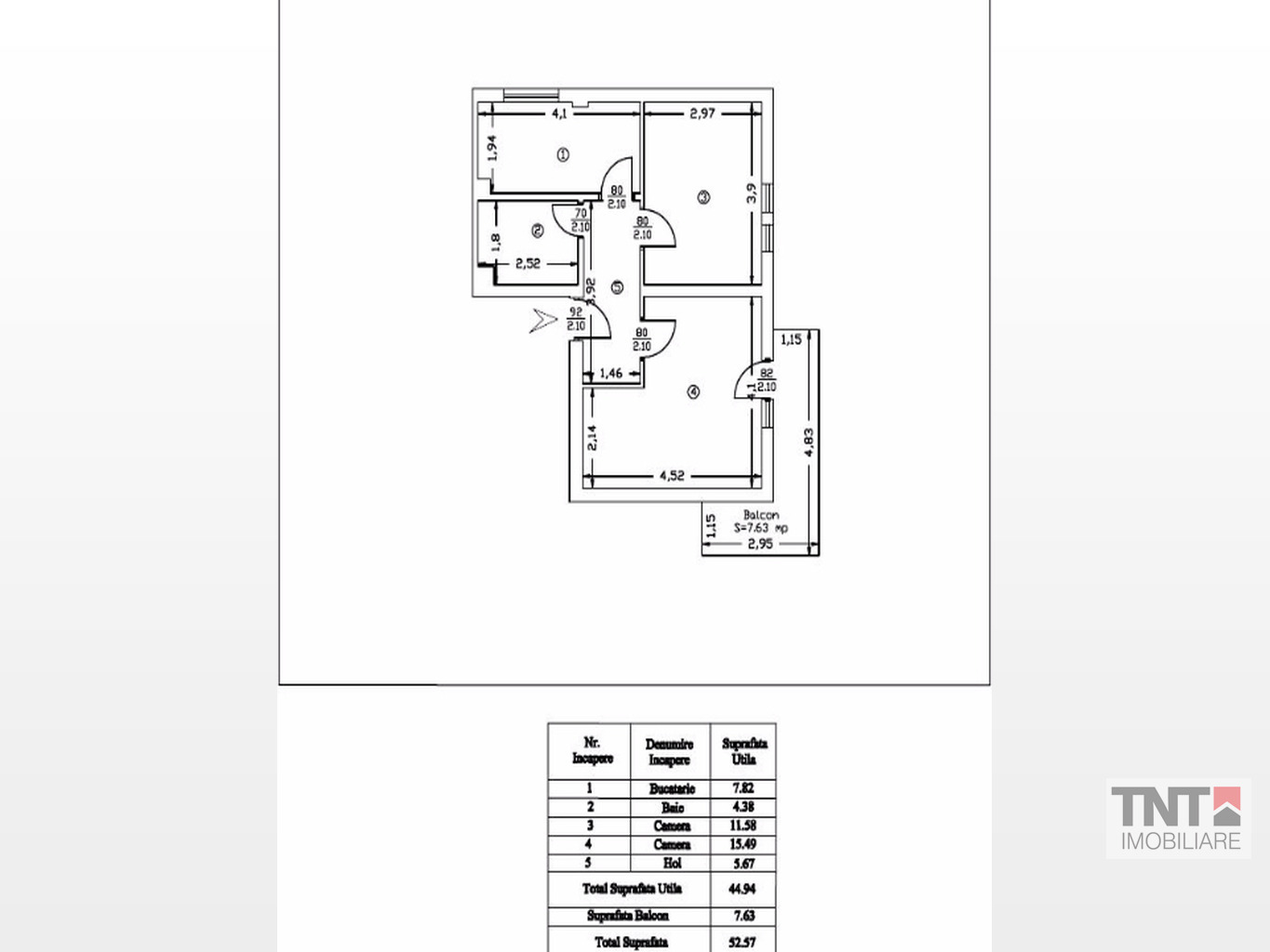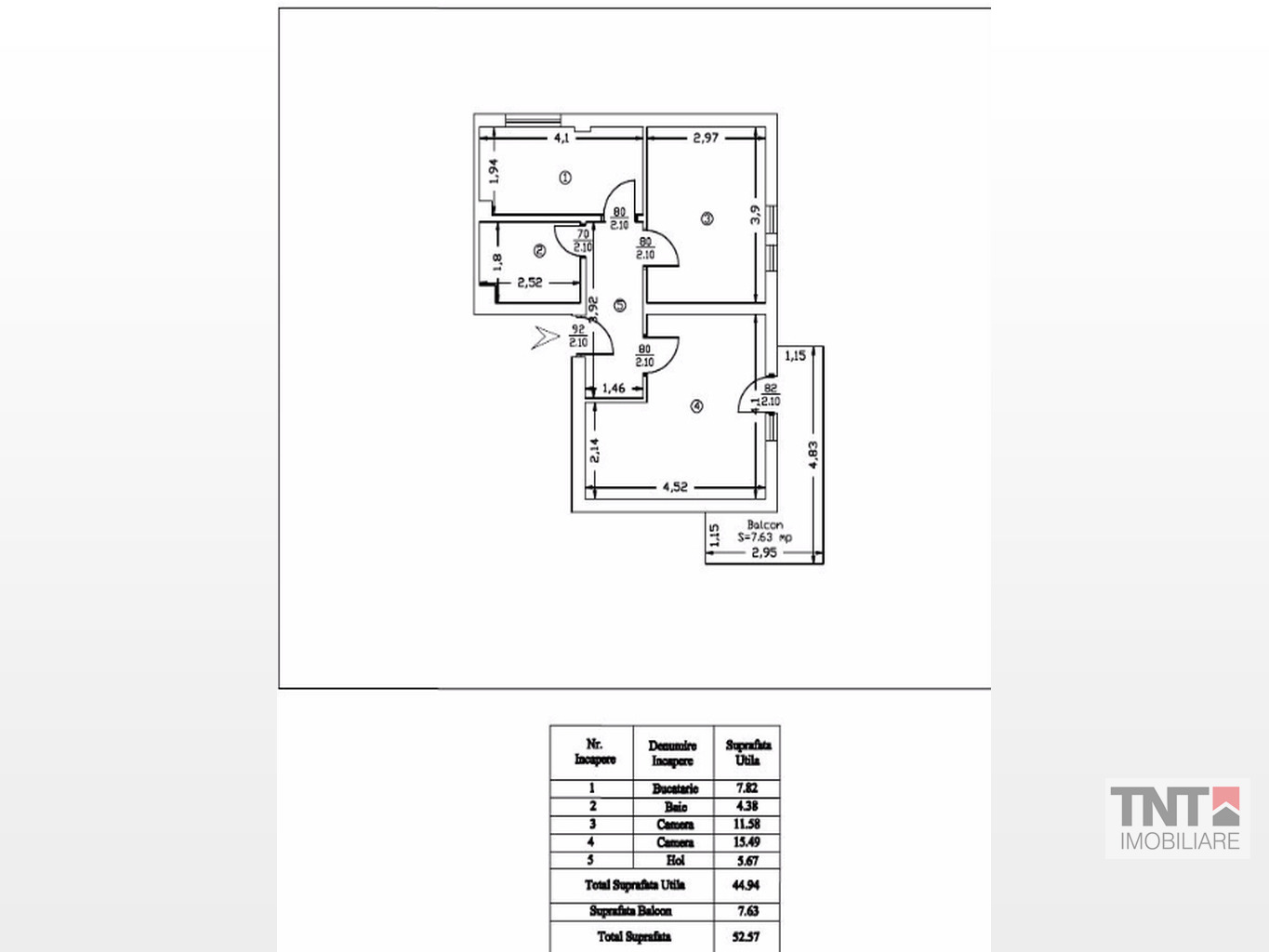 - ET 1- 2 camere-45 mp+7,63 mp balcon=43000 euro.