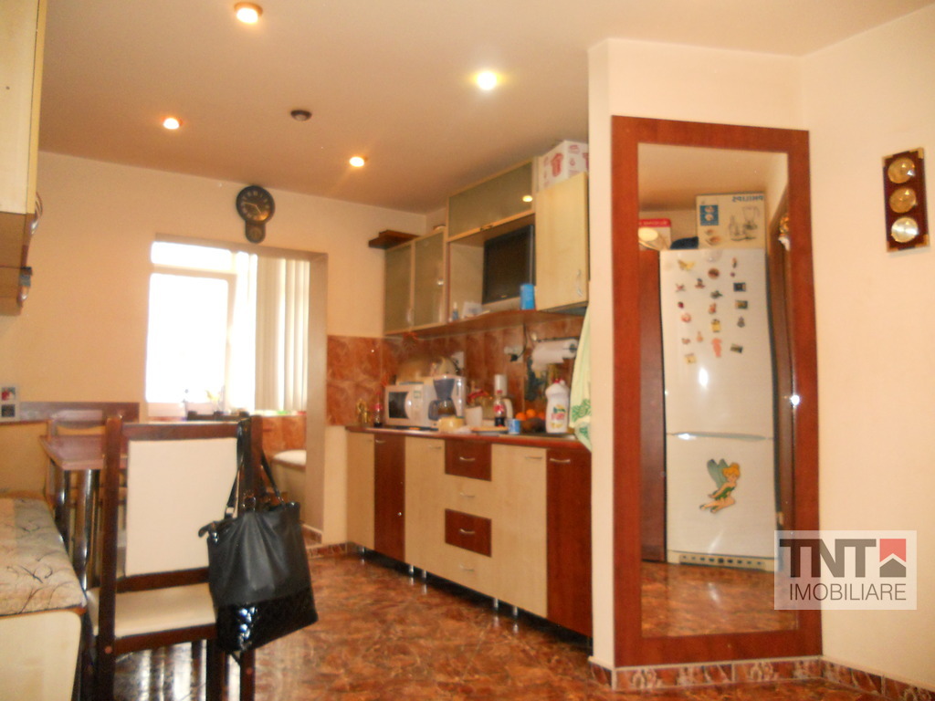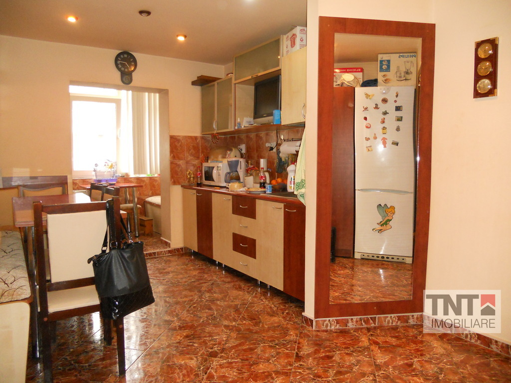 Apartamentul beneficiaza si de garaj (23 mp) si doua boxe. Se vinde mobilat.