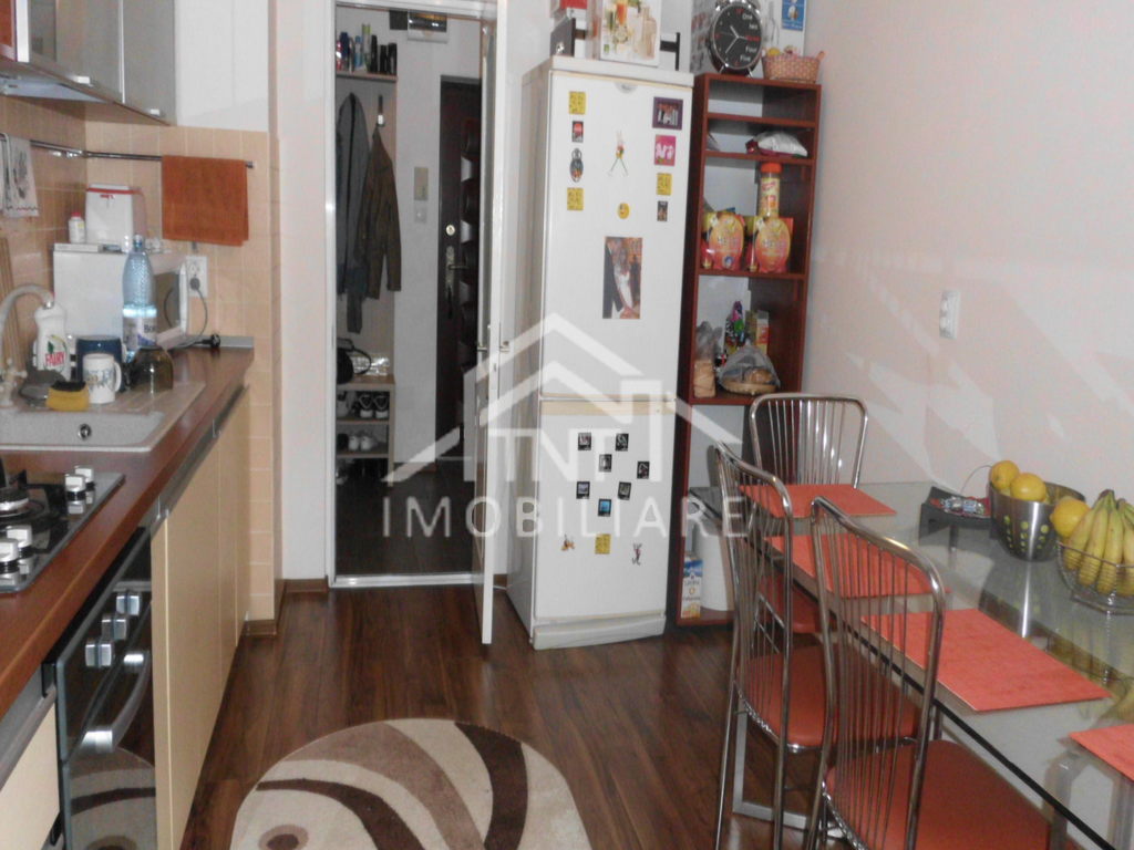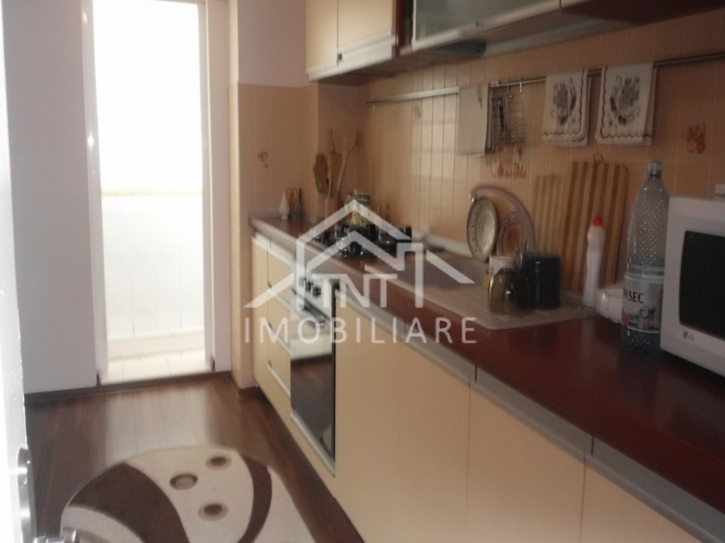 Apartamentul propus spre vanzare se afla intr-un bloc pe cadre cu 4 nivele, la etajul 1, este dotat cu centrala termica pe cu, parchet laminat, gresie si faianta, tamplarie pvc exterior, tamplarie noua interior, var lavabil recent. Apartamentul are 2 grupuri sanitare, balcon mare, este situat pe mijloc si este orientat sud. Apartamentul se poate vinde mobilat si utilat la pretul de 75000 euro sau ne-mobilat si utilat la pretul de 70000 euro. Nu sant datorii, iar eliberarea poate fi pe loc, in cazul vanzarii cu dotarile existente.