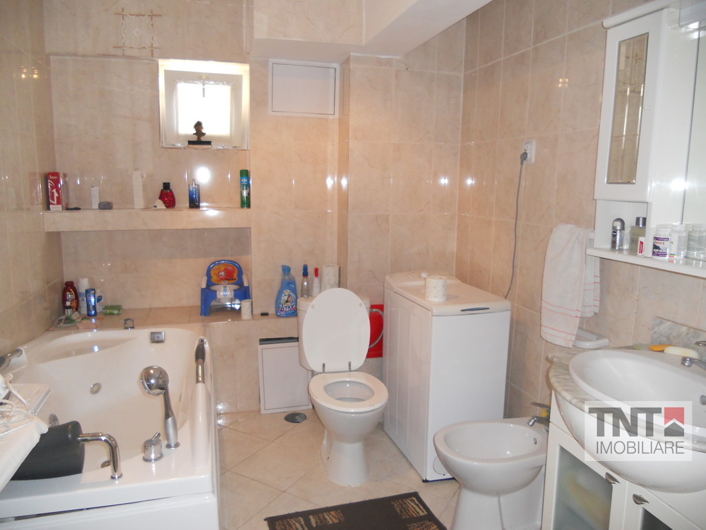 Apartamentul este amenajat modern cu gresie si faianta, parchet, tamplarie pvc la exterior, centrala termica cu instalatie din cupru, tamplarie interior schimbata, baie marita cu mobilier de calitate. De asemenea apartamentul dispune de baie cu geam, boxa la subsol si de loc de parcare inchiriat de la primarie.
