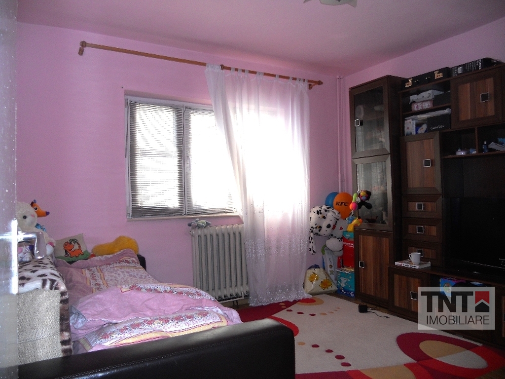 Apartament 4 camere situat intr-o locatie ideala, aflandu-se in apropiere de statii pentru mijloacele de transport in comun, magazine non-stop, supermarketuri. In spatele blocului se afla o parcare mare, parc de joaca pentru copii.