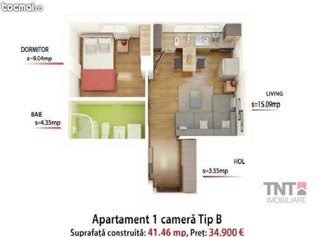 - Apartament 1 cameră Tip B