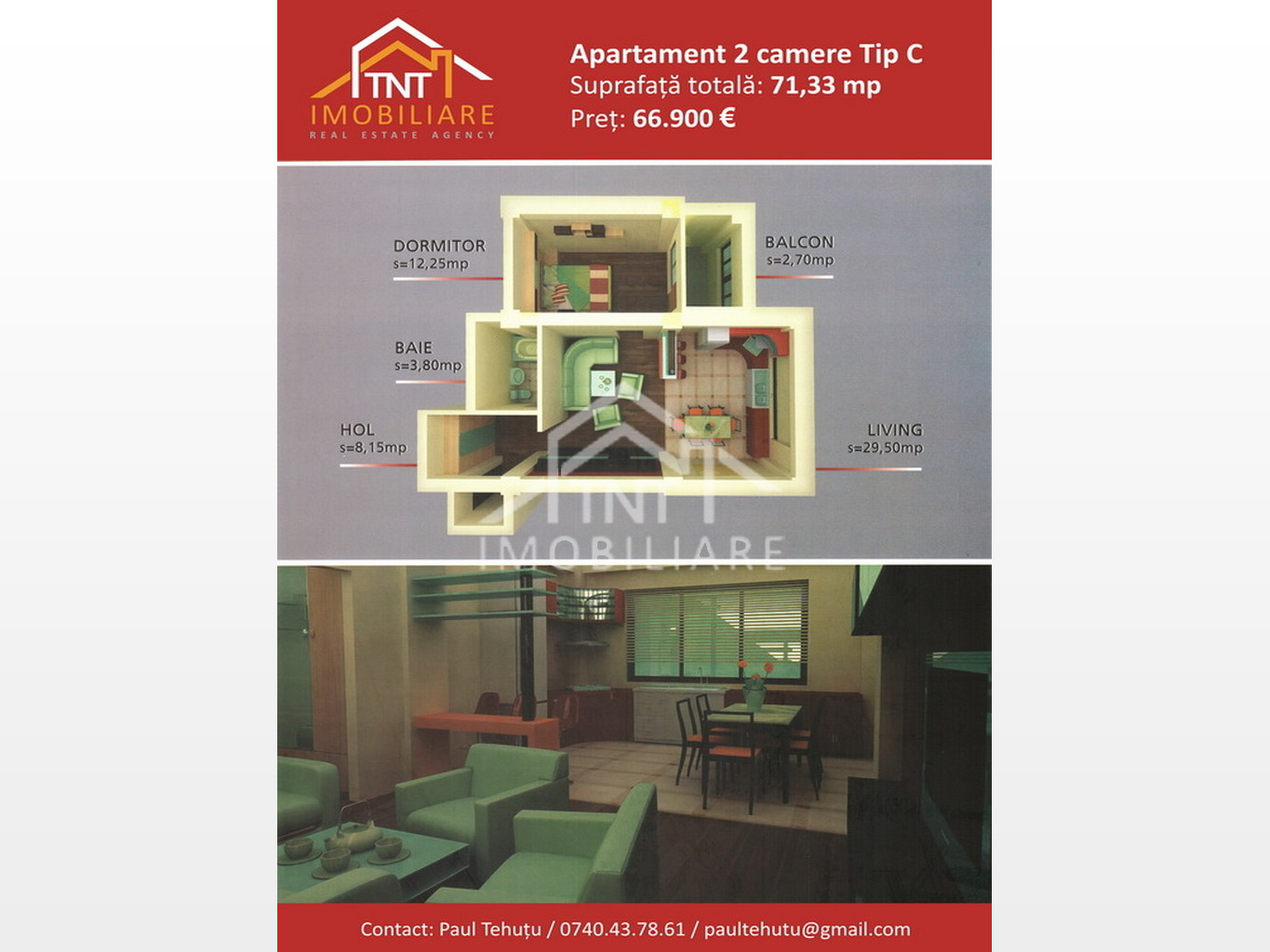 Pentru mai multe detalii va rugam contactati consilierul TNT imobiliare. Paul Tehutu broker imobiliar 0740.43.78.61 sau 0332.455.523 paultehutu@gmail.com