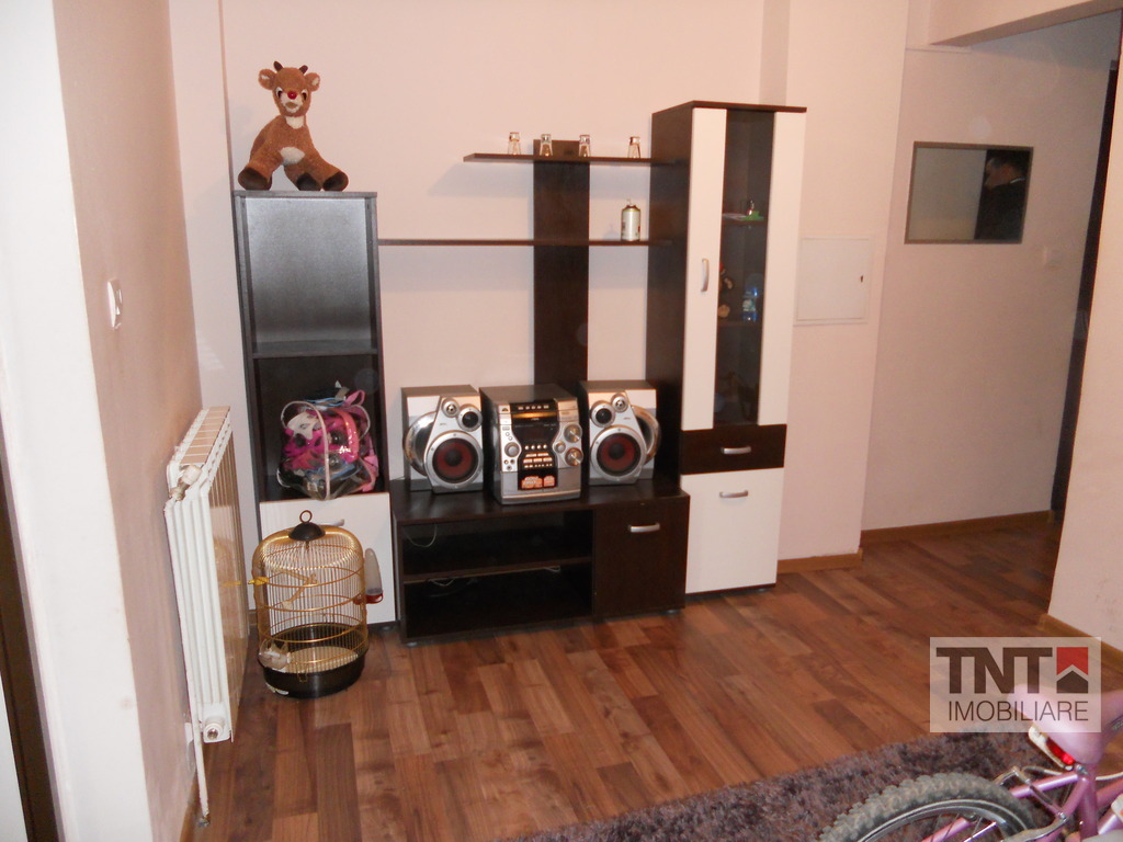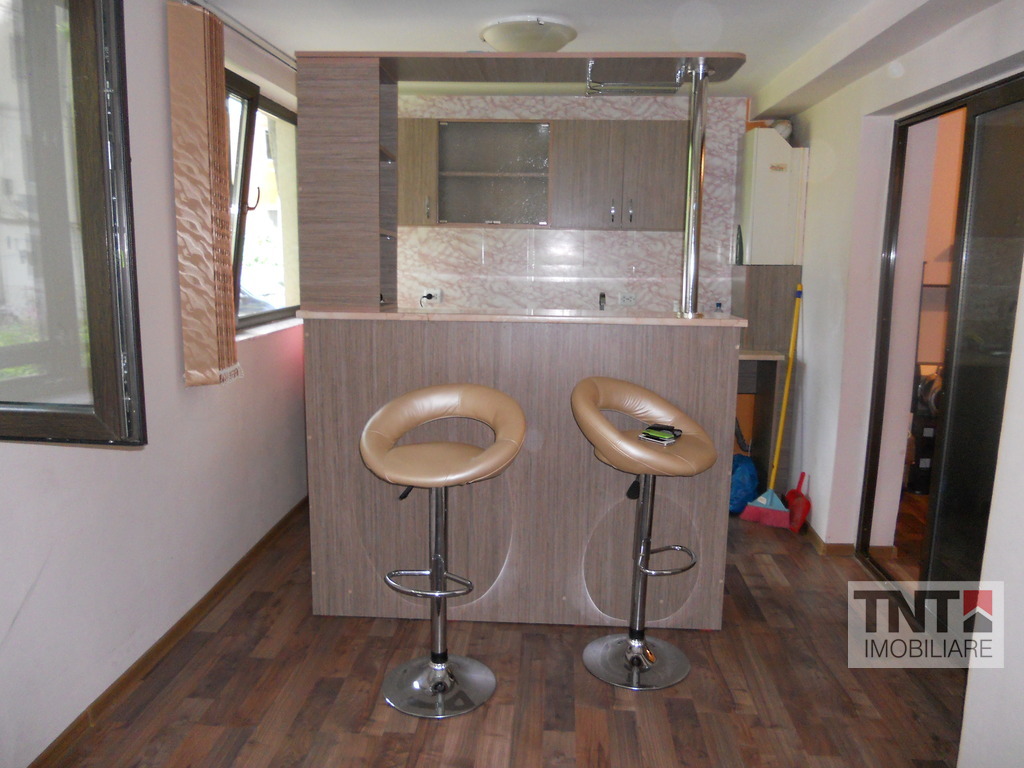 Apartament 2 camere, este la parterul unui bloc cu 4 nivele, are o suprafata de 52 mp, gresie, faianta, parchet, centrala termica proprie, baie, bucatarie, utilata, bar, combina frigorifica, mobilat.