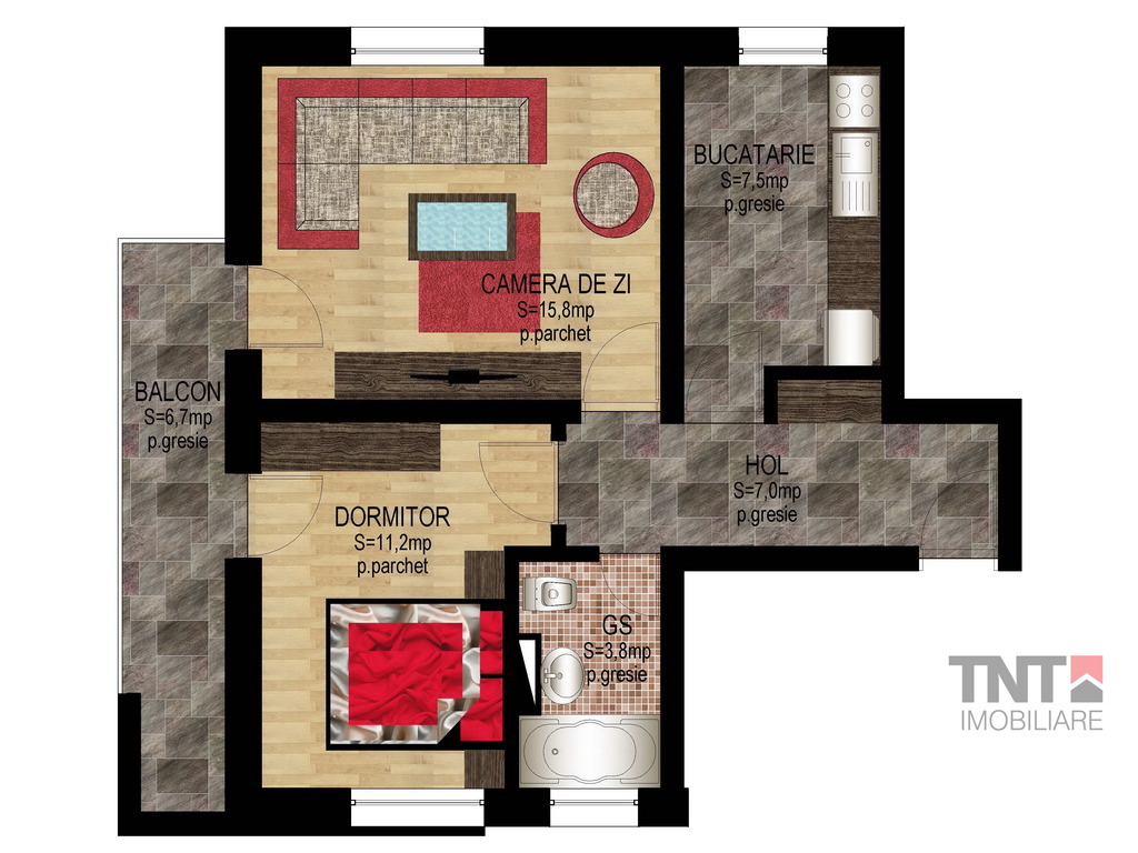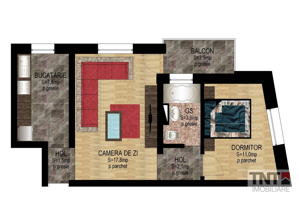 - gresie pe holuri, băi şi bucătarii;