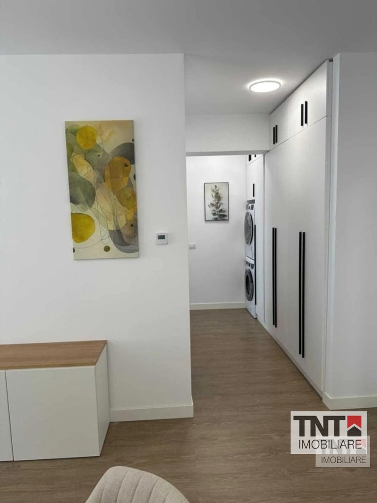Apartamentul este complet mobilat și utilat cu tot ce e nevoie (combină frigorifică, mașină de spălat vase, cuptor electric și plită inducție, mașină de spălat rufe, mașină de uscat, TV și aer condiționat).
