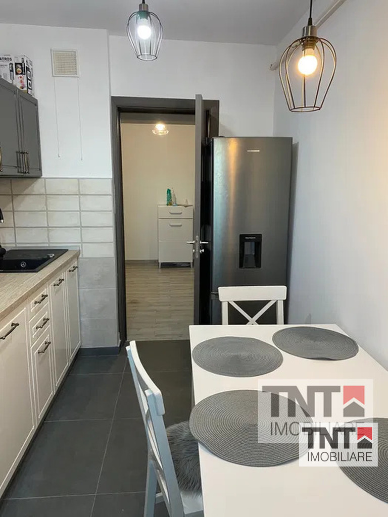 Acesta fiind compartimentat decomandat astfel: 2 holuri cu dresig spatioas care diapune de masina de spalat si uscator de rufe, bucatarie complet echipata, camera de zi, baie, 2 dormitoare si un balcon de 6mp.