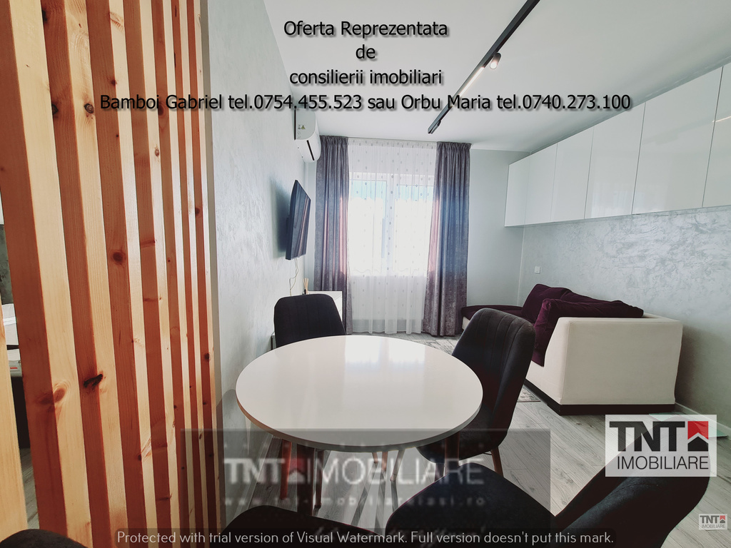 400 euro-Apartament 2 camere luminos si cochet de inchiriat bloc nou zona Bld Poitiers! 🏠💡TNT IMOBILIARE propune spre inchiriere in EXCLUSIVITATE un apartament cu 2 camere modern, complet mobilat si utilat cu electrocasnice de ultima generatie, aer conditionat, televizor in living și in dormitor, beneficiind de finisaje superioare și materiale de calitate. Proprietatea se desfasoara pe o suprafata de 44 mp cu o compozitie semidecomandata configurata cu living in calda cromatica open space cu bucataria, dormitor - cu acces la terasa, eleganta baie, hol cu dresing și multiple compartimente de depozitare. Apartamentul este amplasat la etajul 5 al unui bloc de 8 etaje și este orientat spre vest, are toate utilitatile, centrala de bloc de unde rezulta costuri mici pe timp de iarna, și oferă o vedere panoramică spre oraș. Ca și beneficii adiacente mentionam pozitionarea in proximitatea tuturor punctelor de interes local, gradul ridicat de insorire, energia cu care ne intampina aceasta proprietate, calitatea materialelor și a finisajelor, precum și accesul facil la mijloacele de transport în comun. La semnarea contractului se percep 1 luna drept garantie, chiria și comisionul !Consilierii dedicati acestei oferte Bamboi Gabriel tel. 0754.455.523 sau Maria Orbu tel. 0740.273.100 sunt aici pentru a vă oferi detalii și a vă ajuta să găsiți locul perfect pentru dvs. Nu ezitați să ne contactați pentru o vizionare! 📲
