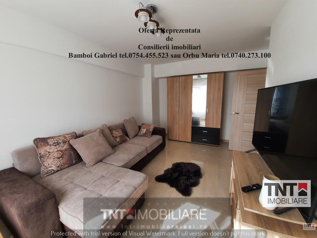 TNT IMOBILIARE Iasi va ofera spre inchiriere un apartament cu o camera decomandat zona Nicolina-CUG. Apartamentul este situat in complexul nou, in bloc turn. Se afla pozitionat intr-o zona cu acces rapid la mijloacele de transport in comun. La 400 de metri aflanduse statia de autobuz/tramvai pentru liniile 19, 42, 43, 43C, 44, 503 cu legaturi directe in majoritatea zonelor orasului: Copou, Podu Ros,Gara, etc. Supermarket, pizzerie, parc de joaca pentru copii, cafenea si magazin produse traditionale romanesti, la parterul blocului.