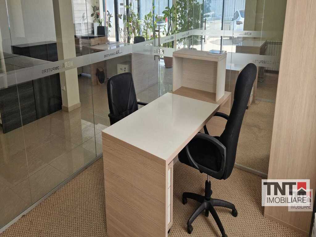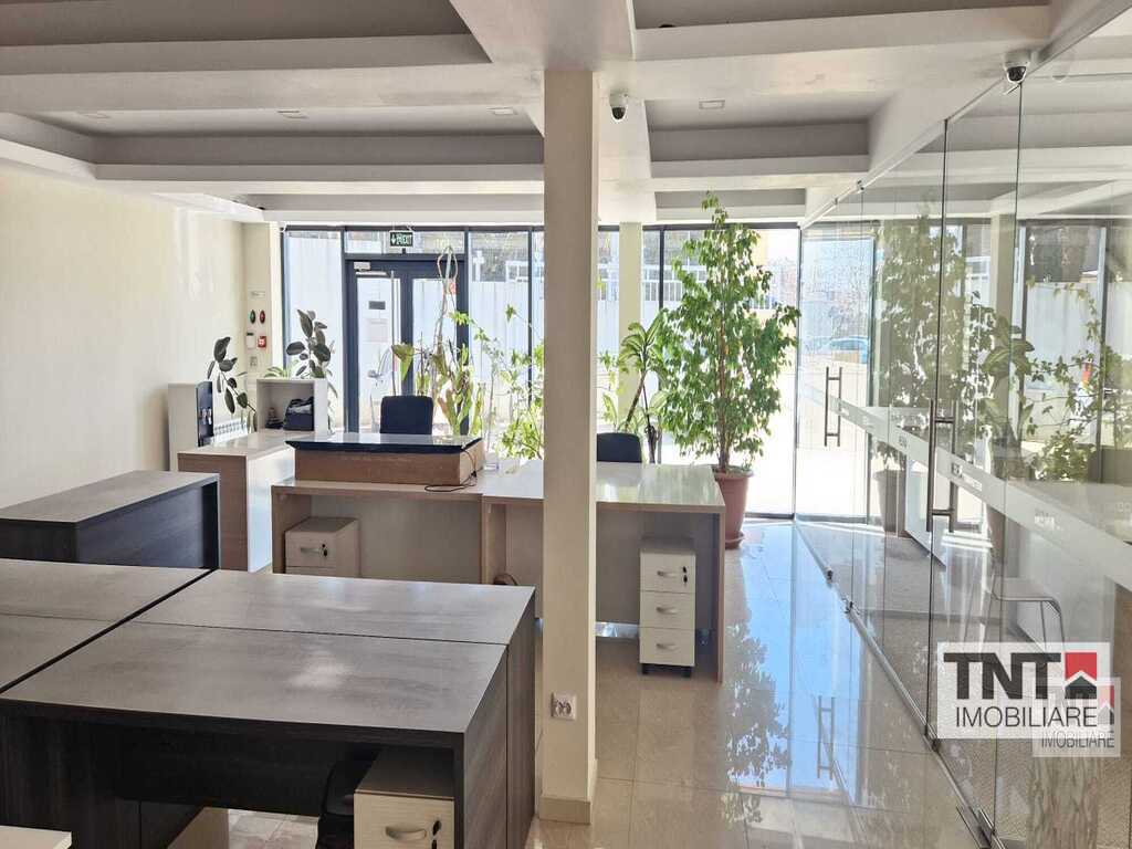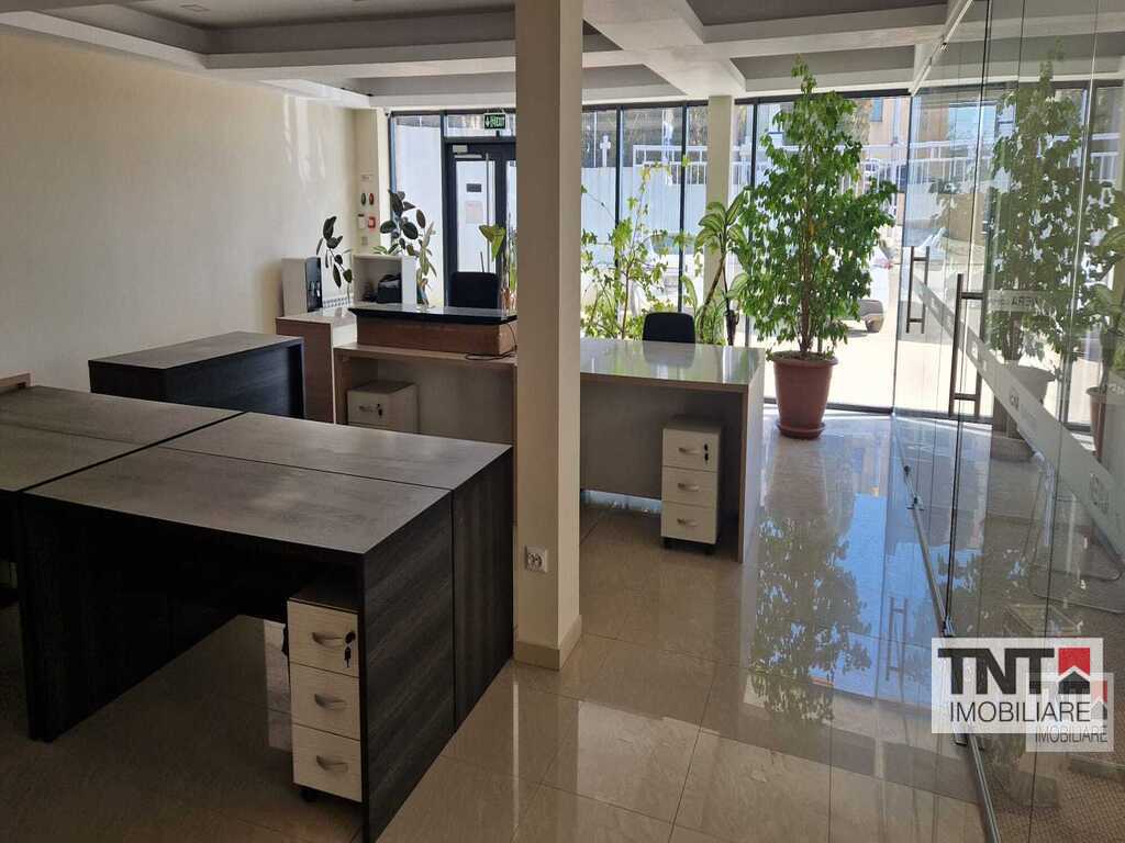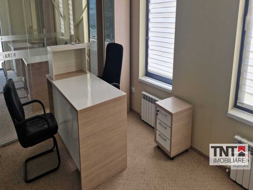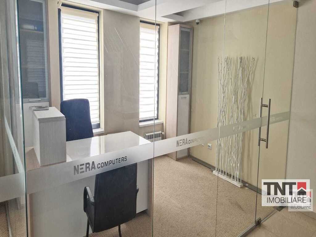 Inchiriere spatiu de birouri in Pacurari zona Valea Lupului mobilat utilat cu locuri de parcare incluse in pret si liber pentru mutare imediata. TNT imobiliare va propune spre inchiriere un spatiu impecabil intr-o cladire noua cu vedere catre Est si Sud Est . Spatiul prezinta o incapere amplu vitrata din care se face intrarea in 3 birouri individuale si este dotata cu aer conditionat, centrala termica, gresie, faianta, parchet, tamplarie PVC cu geam termopan. Cladirea este situata la aproximativ 300m de Soseaua Europeana si se afla la parterul unei cladiri constructie pe cadre luminoasa si cu acces rapid la mijloc de transport CTP si magazine.
