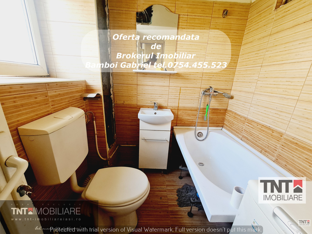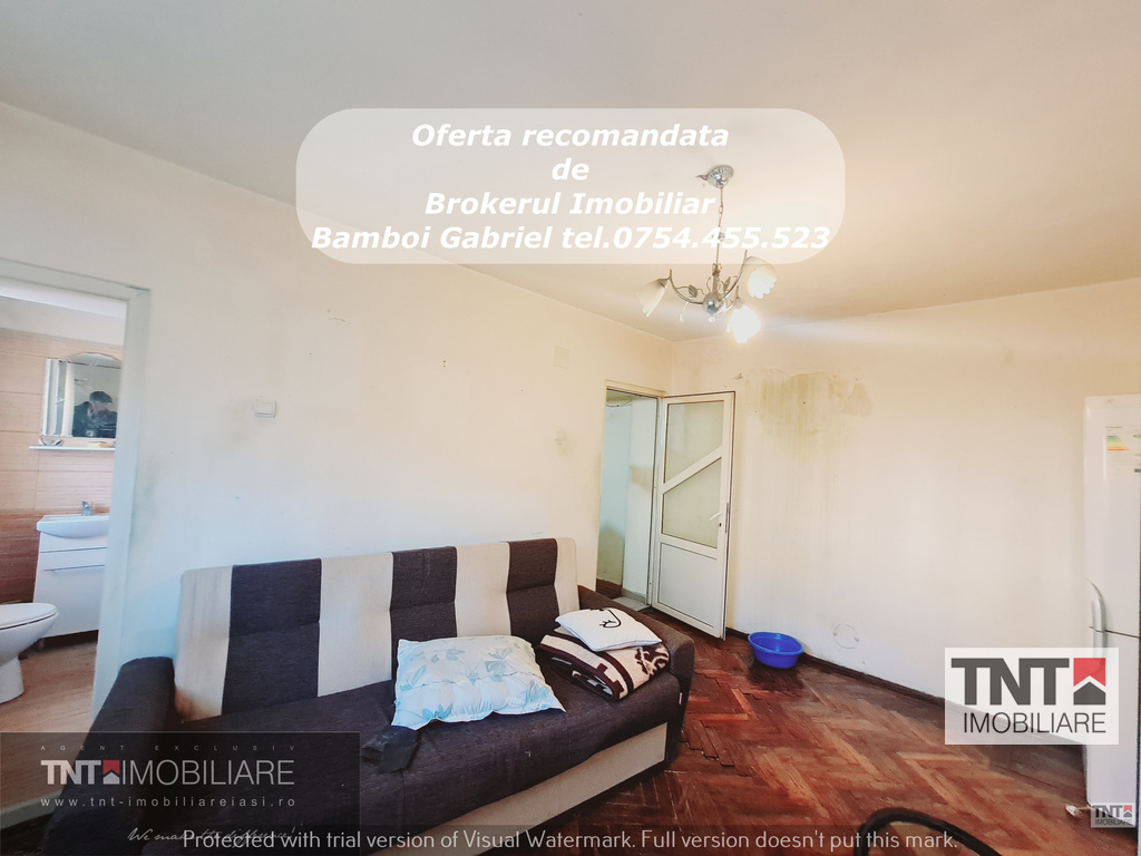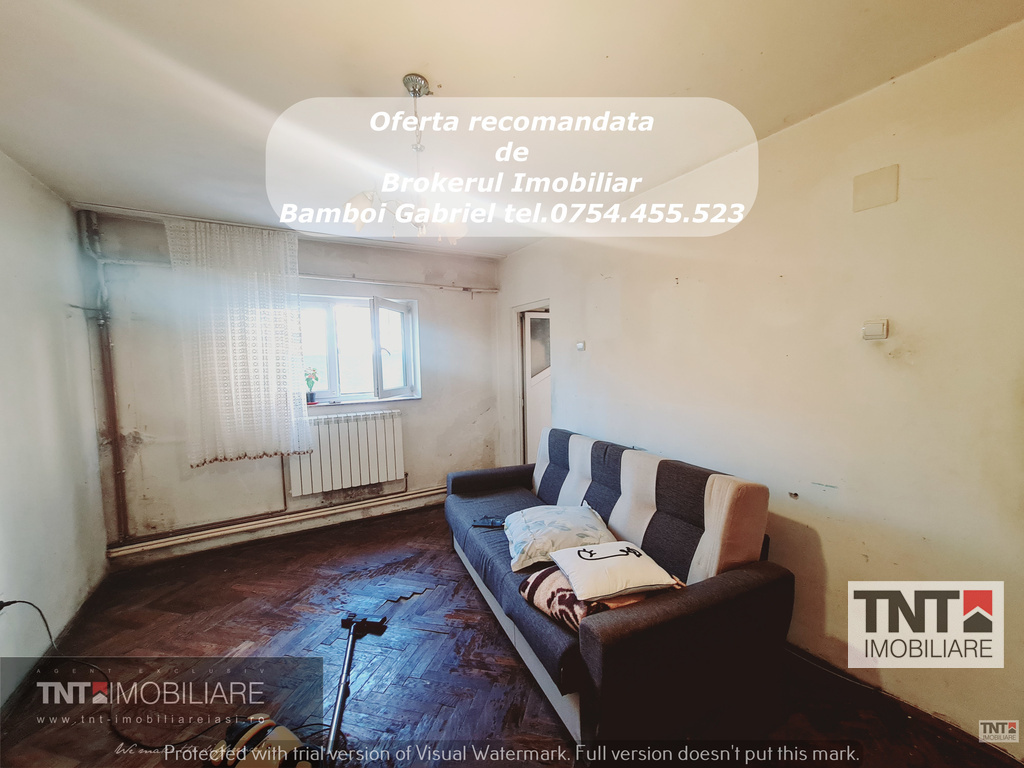 TNT IMOBILIARE va propune spre vanzare un apartament 2 camere semidecomandat cu o suprafata utila de 46mp situat la demisol inalt din 4, zona Copou. Pozitionarea imobilului al recomanda ca invetietie ca birou,cabinet etc , ofera acces facil catre mijloacele de transport in comun, scoli, gradinite, supermarketuri, farmacii, institutii bancare.Apartamentul are ca imbunatatiri tamplarie pvc cu geam tripan,termoizolatie exterioara.