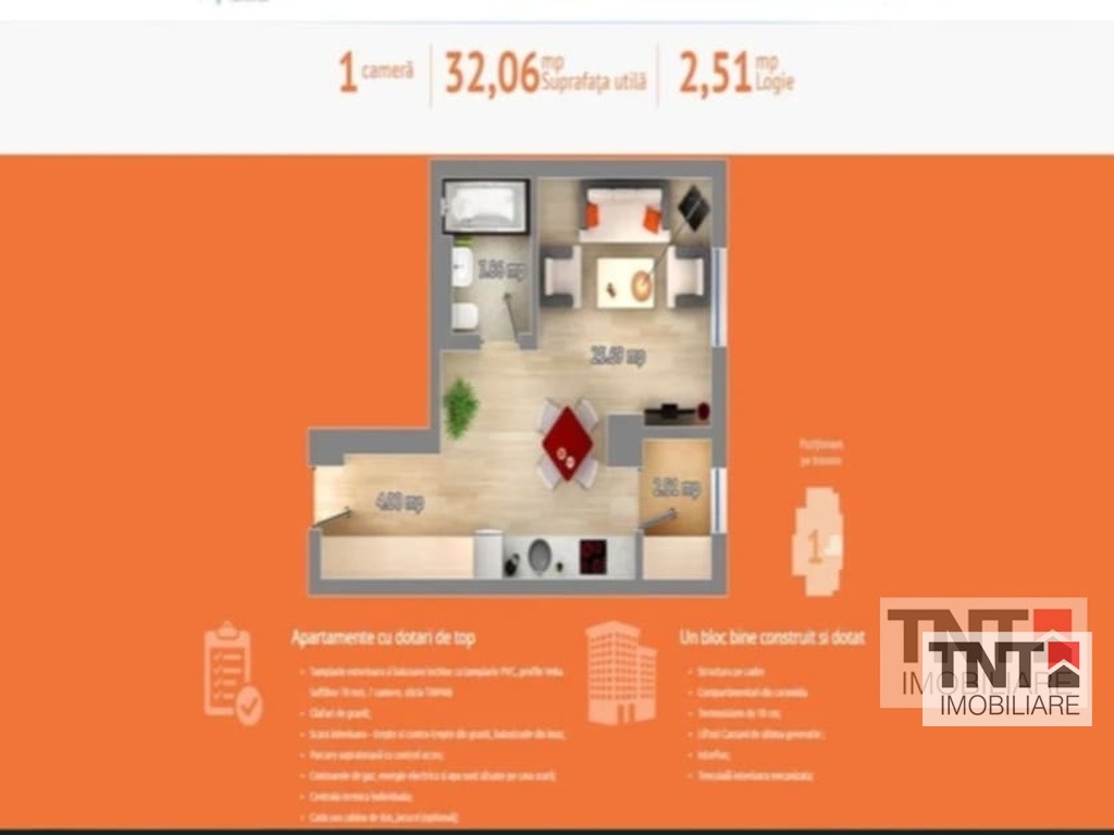 TNT IMOBILIARE Iasi va ofera spre inchiriere apartament cu o camera in zona Pacurari-Canta.